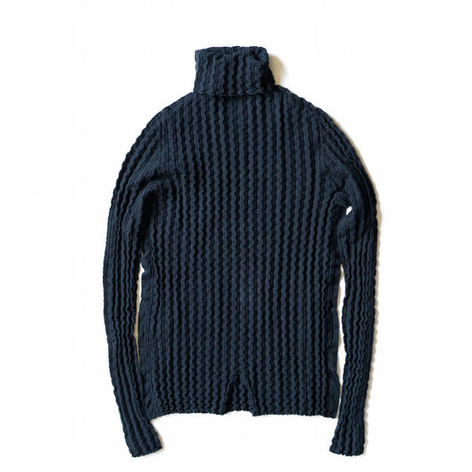 デザインから素材選定・編み組織・纏い方までを一貫して行う、ニットならではの工程。