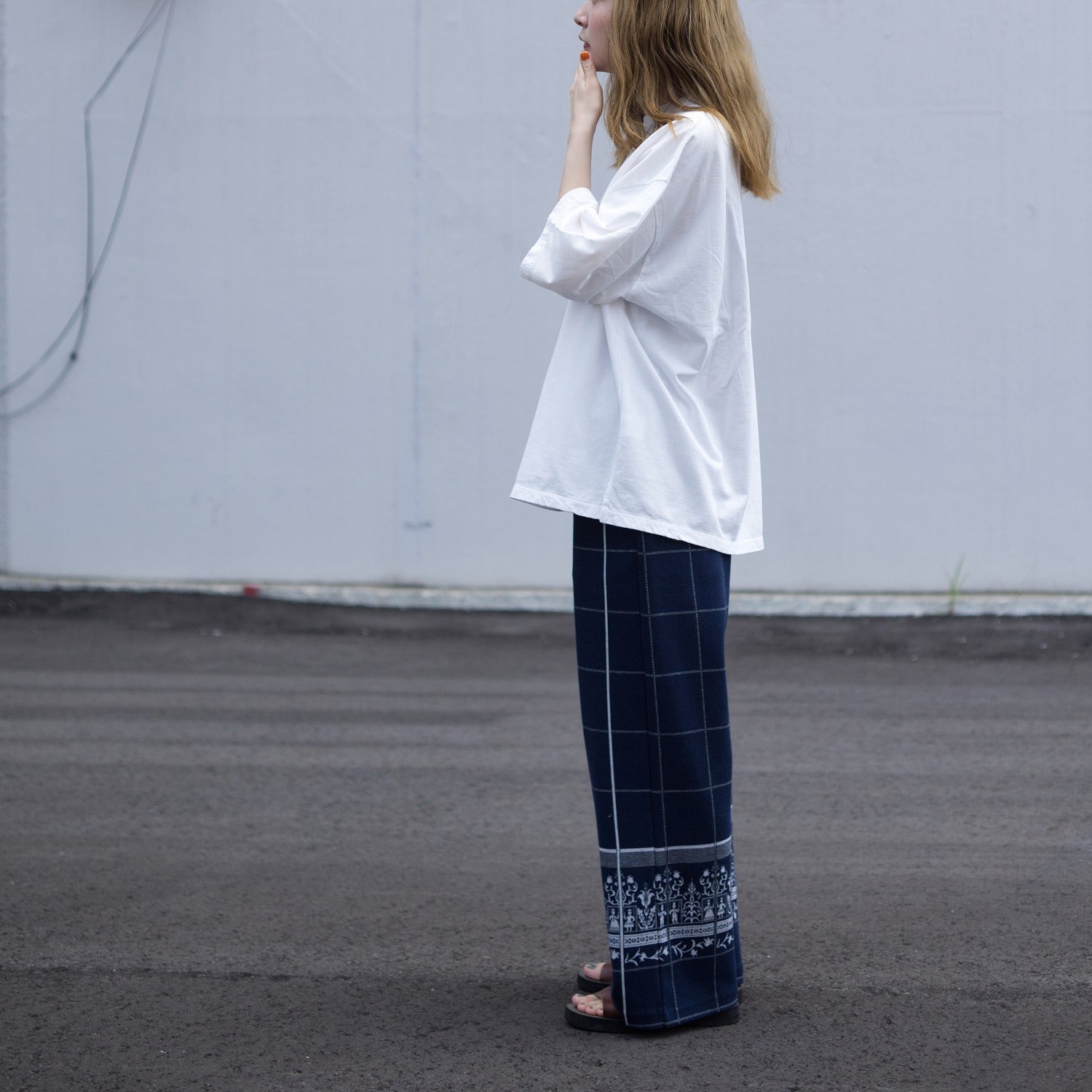 You can wear it as a set with this season's polo shirt with the same pattern, and since the hem has a pattern, I think it would look even cuter when paired with a shirt dress or a loose-fitting T-shirt.