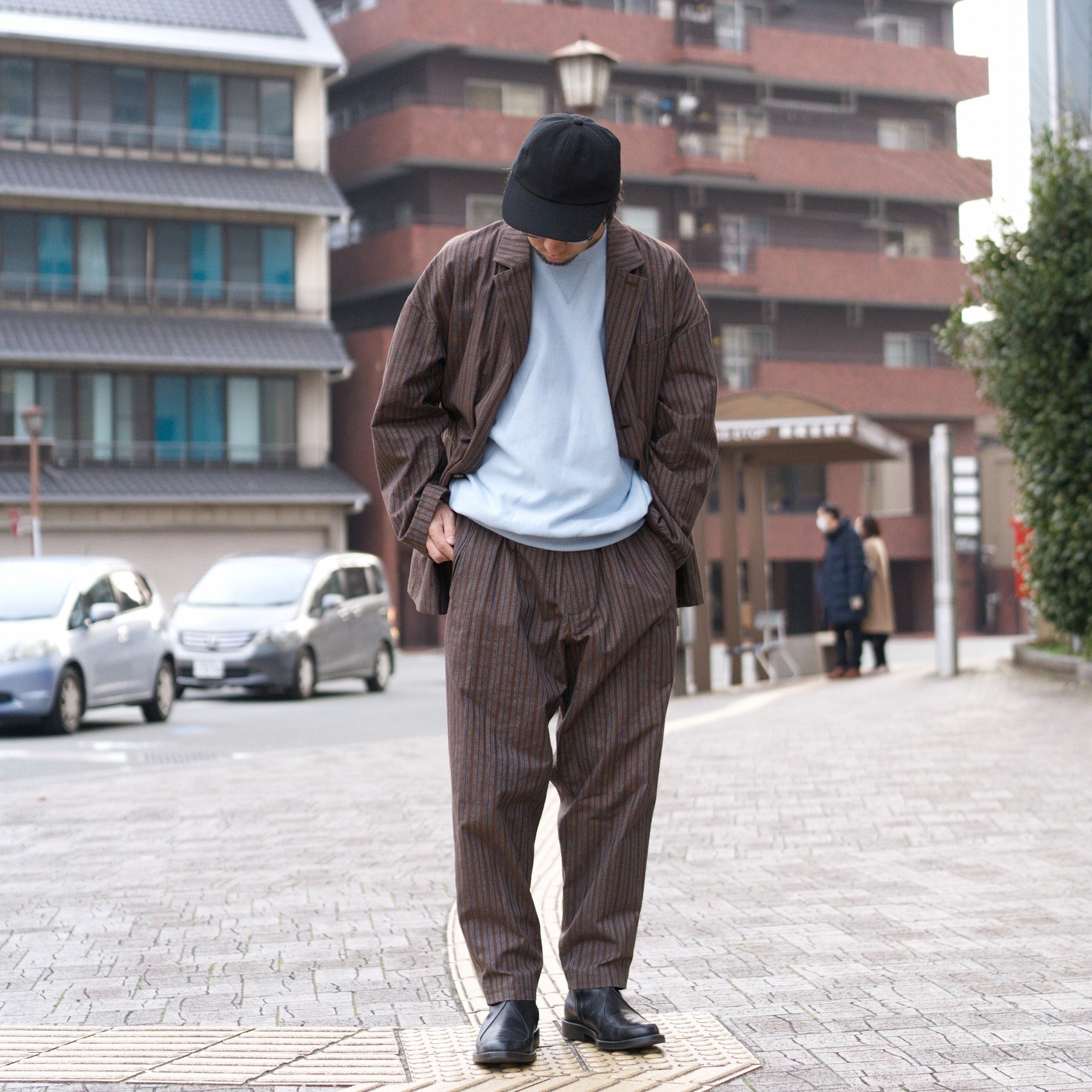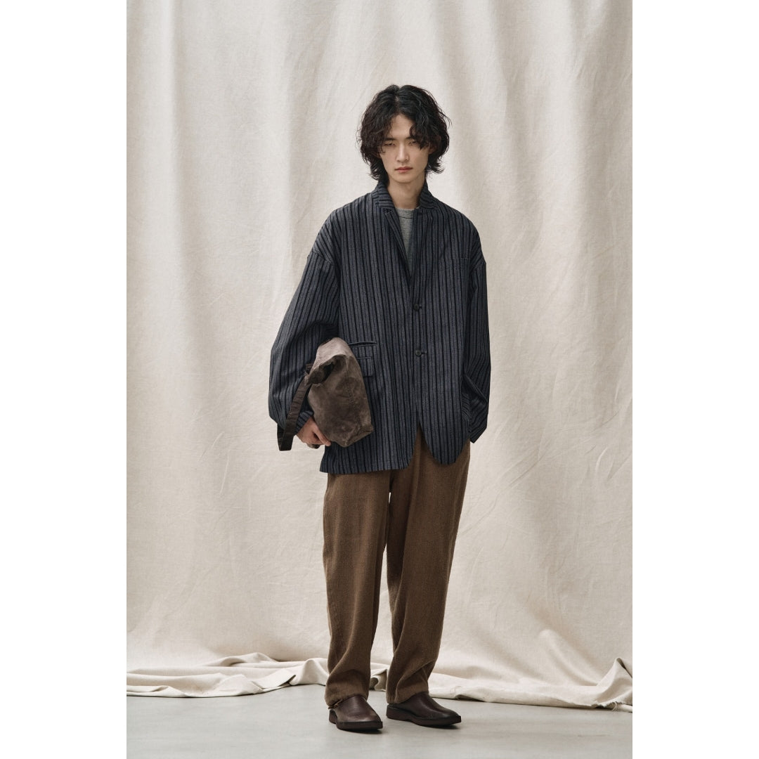This is an original striped material that has been reinterpreted by adding unique arrangements such as blending ratio and color, with reference to archival materials that were hidden in the warehouse of a historic weaving shop in Bishu.