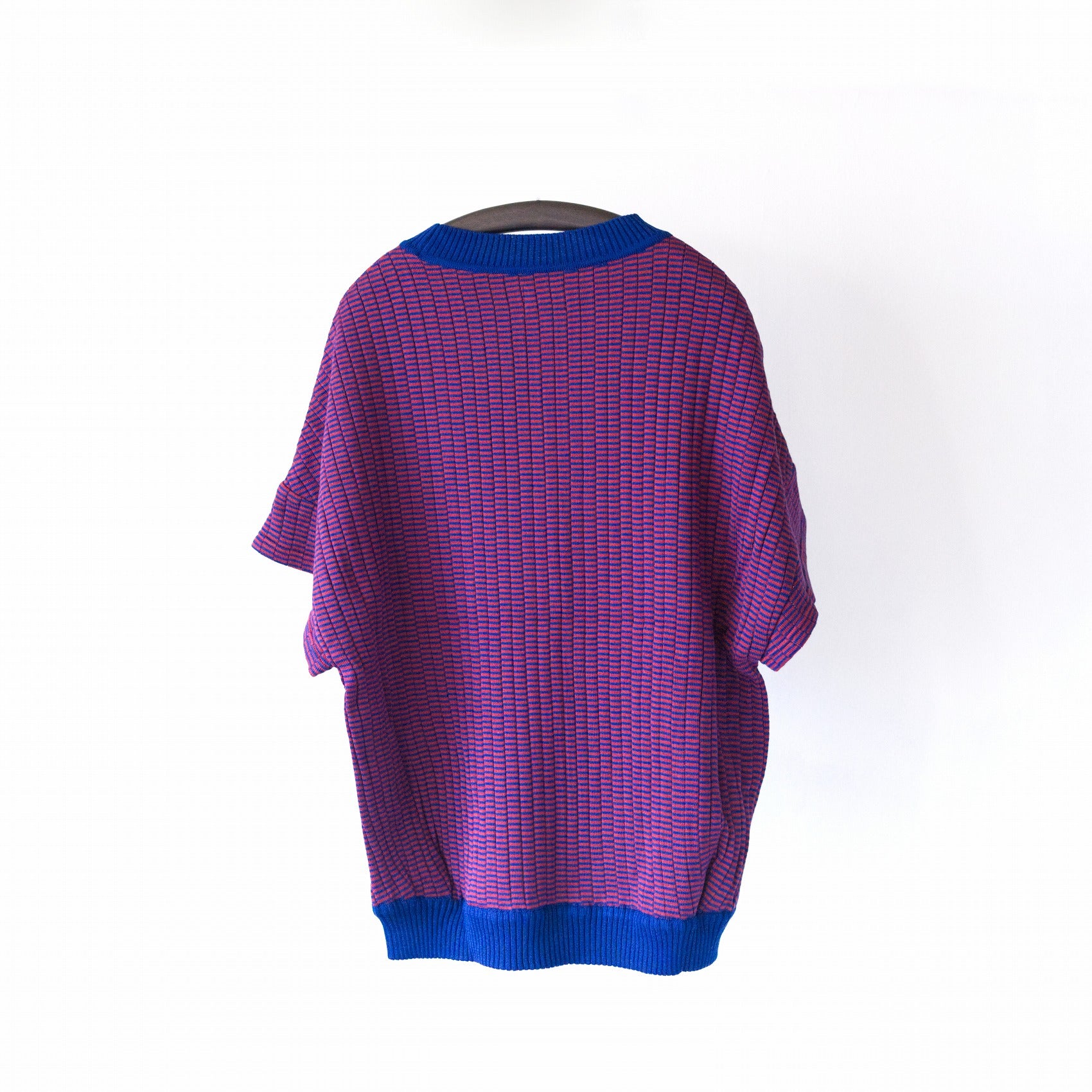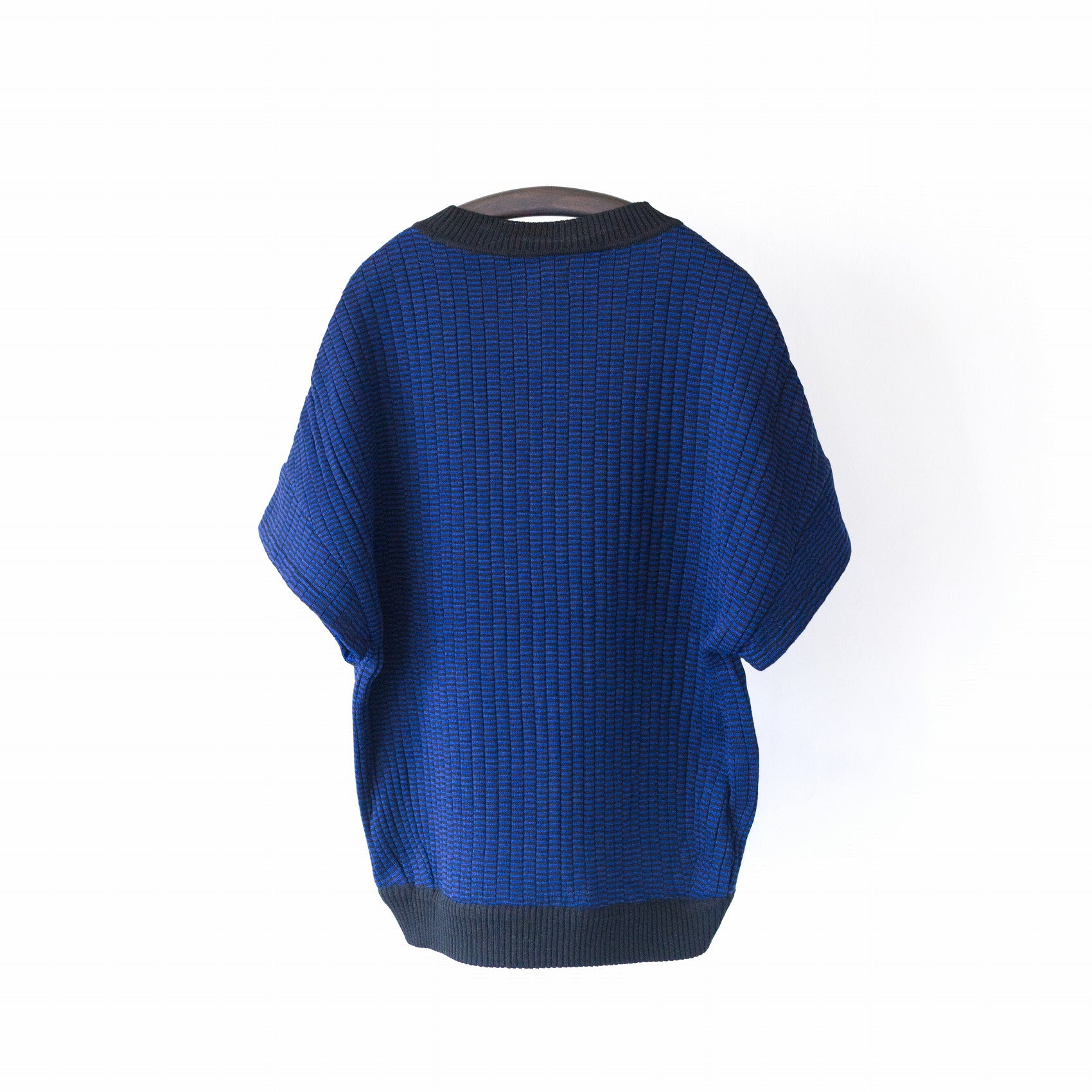 2色の細い糸で編み立てられた滑らかな質感のニット地。