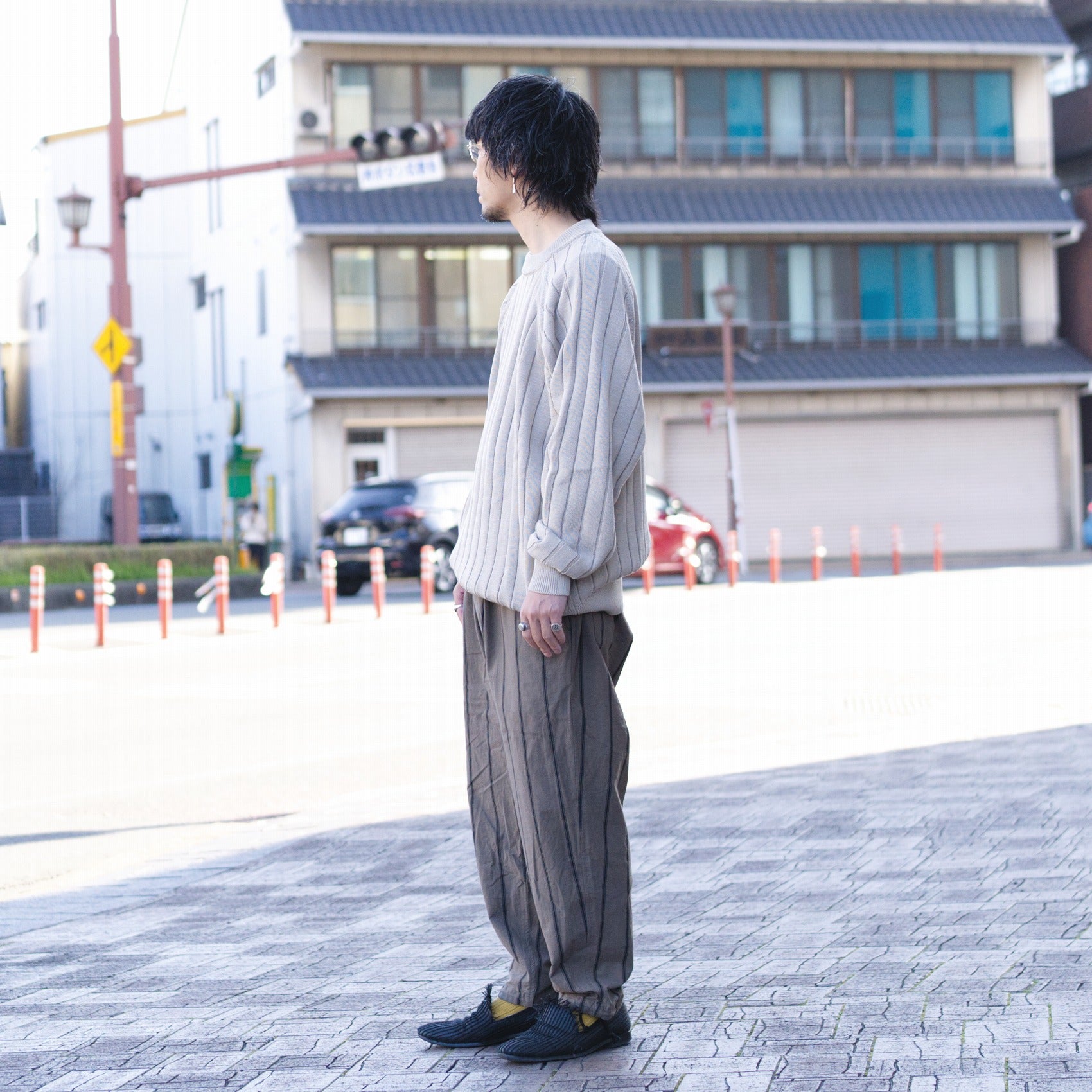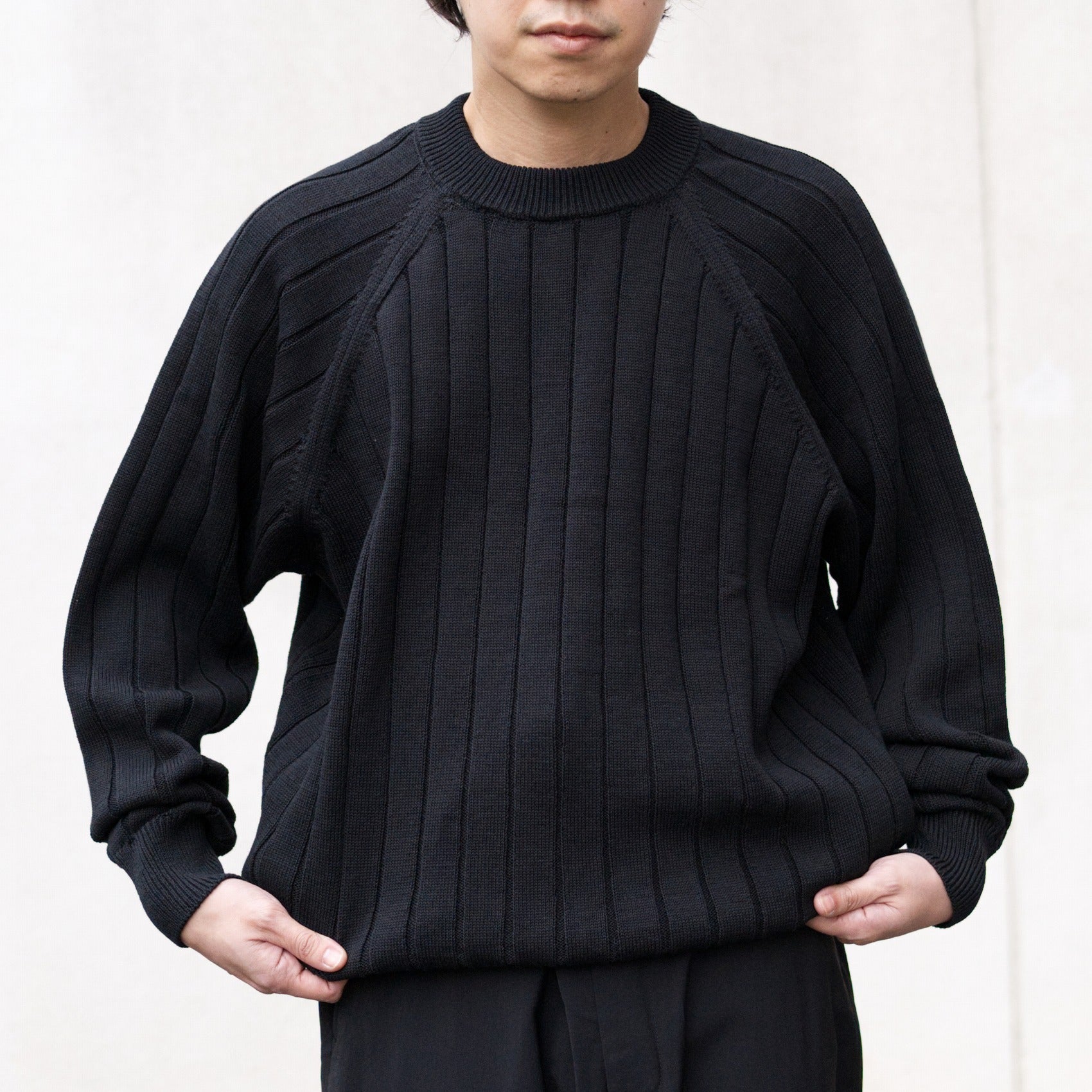 A thick ribbed raglan crew neck knit inspired by the simple house brand knits of a very old era.