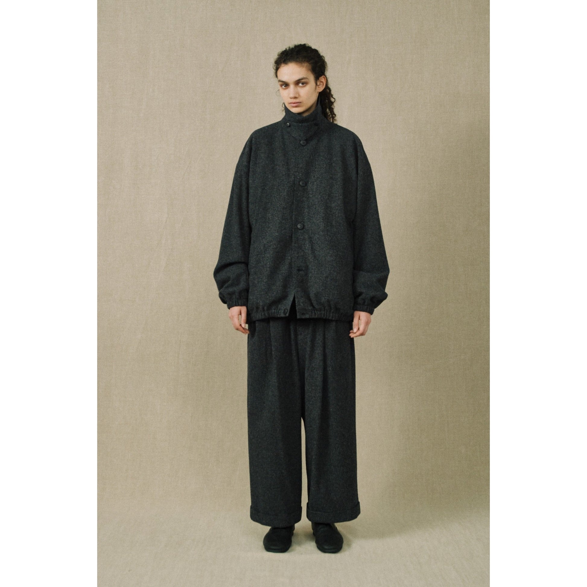 カシミア混のウール素材で落ち着いた上品さのある質感に仕上がっています。
