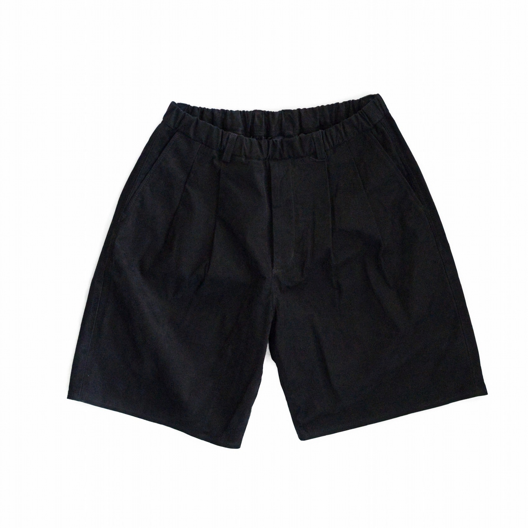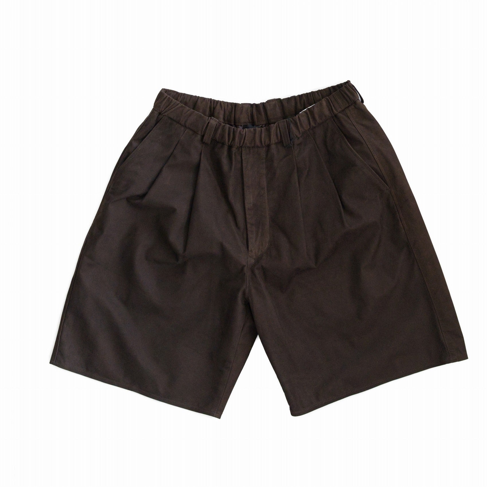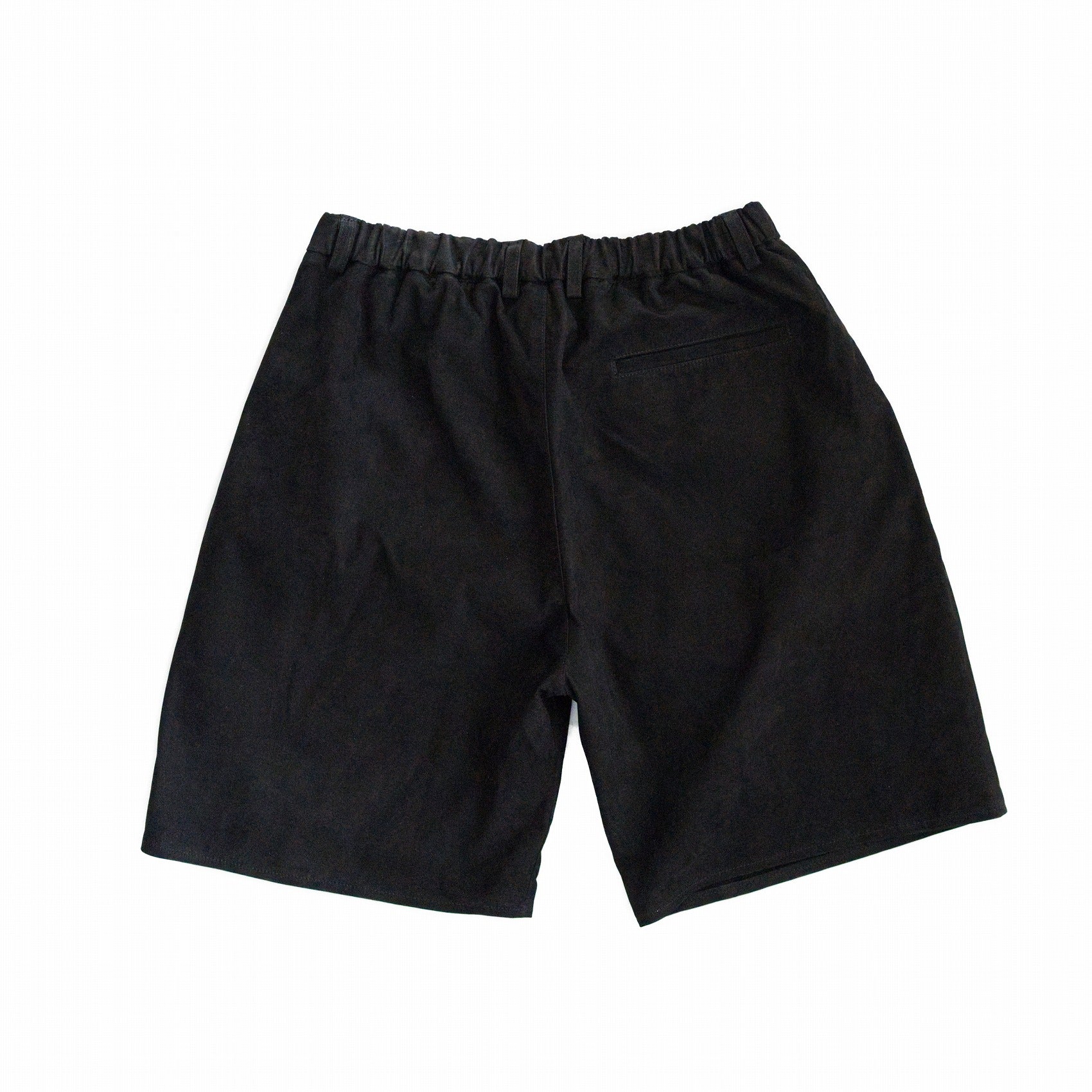 一周ウエストゴムが入った2タック仕様のレザーワイドイージーショーツ。