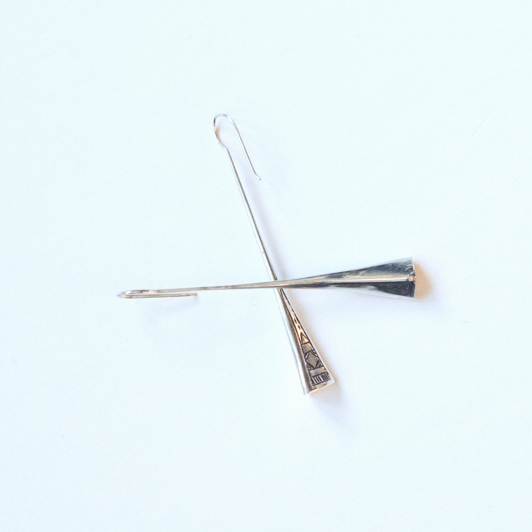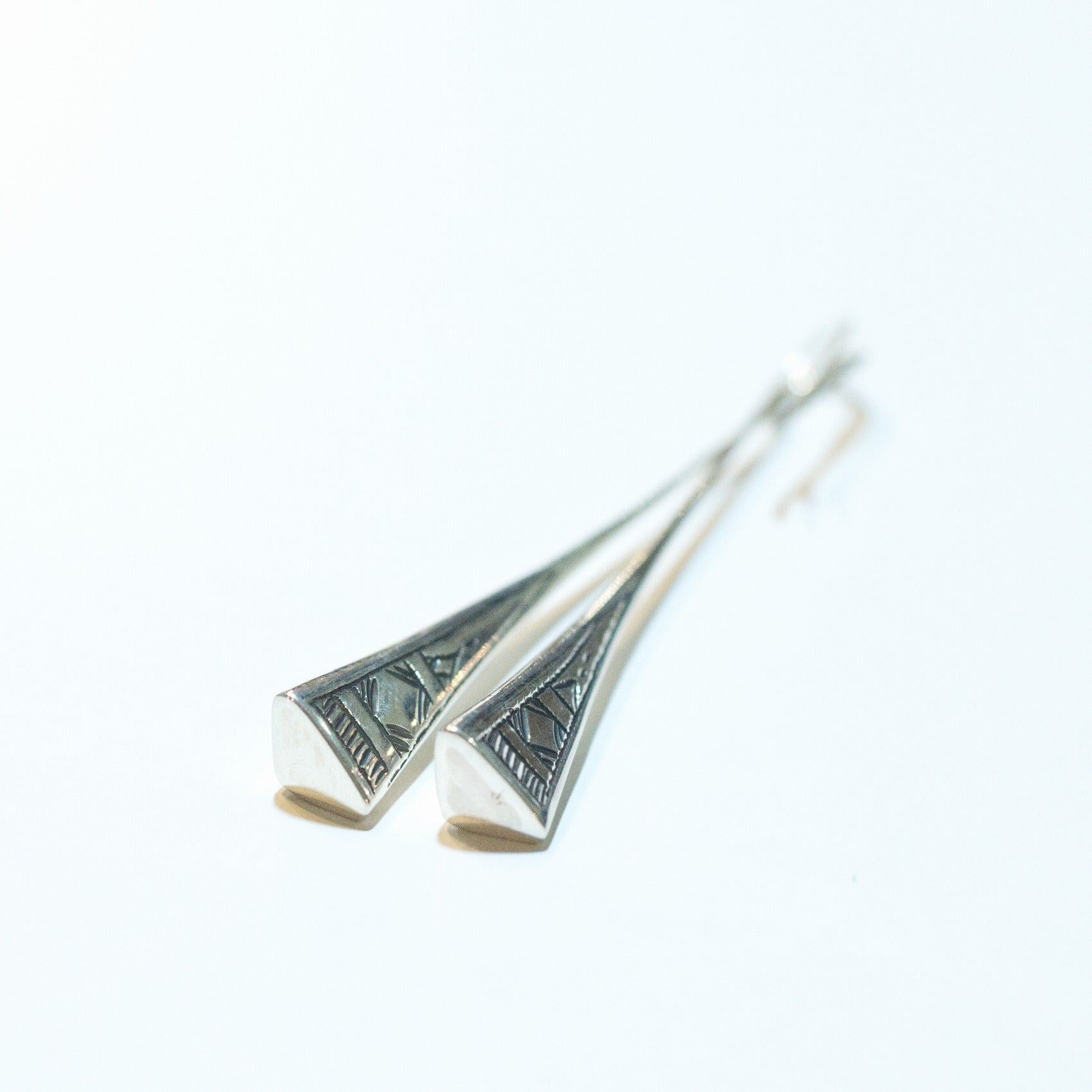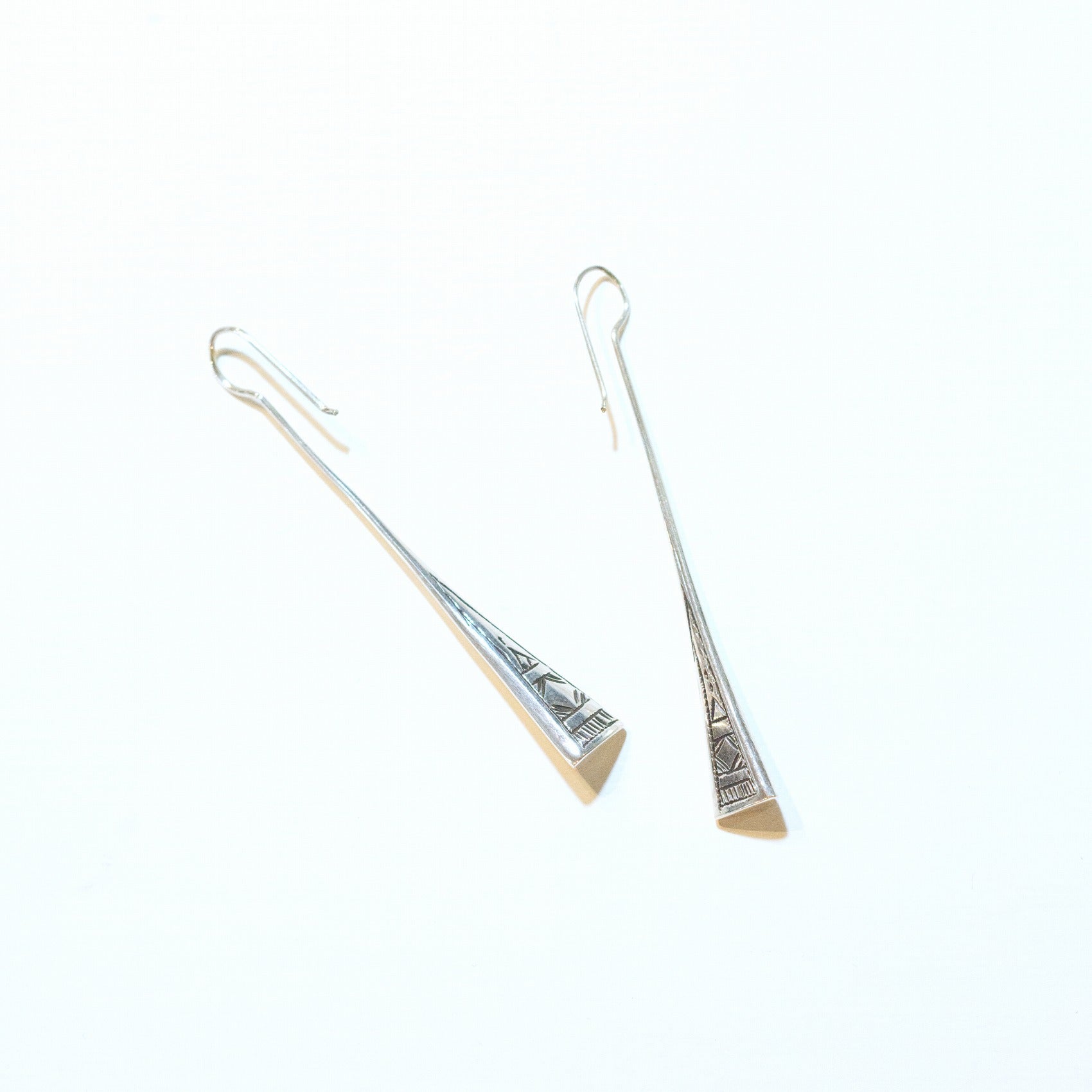 When viewed from the front, they look like simple silver earrings, but the back of the tips are engraved with Touareg-like patterns one by one.