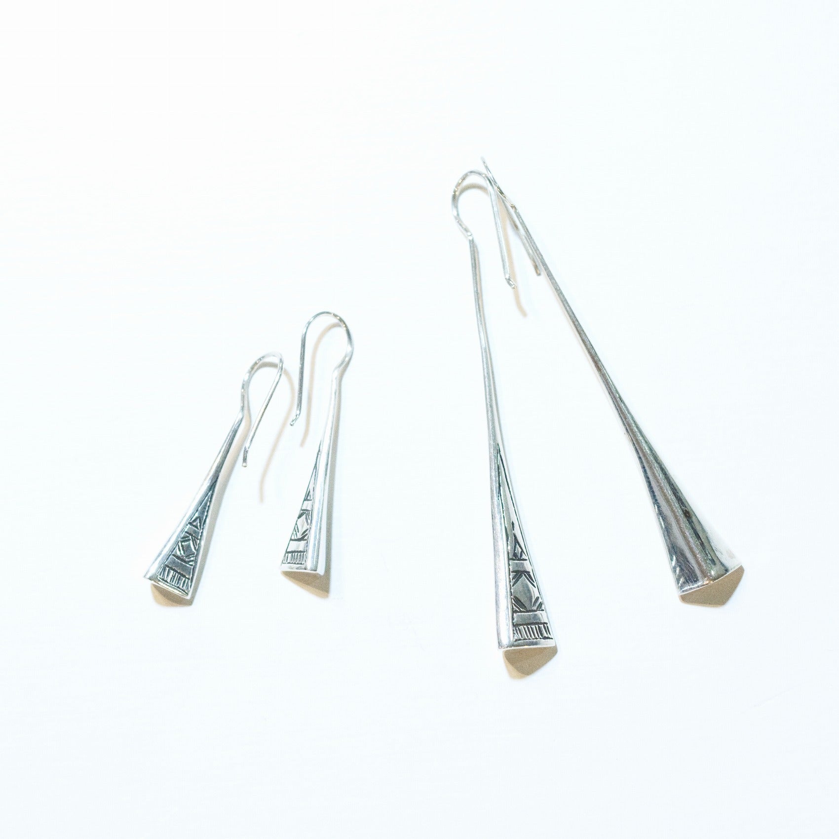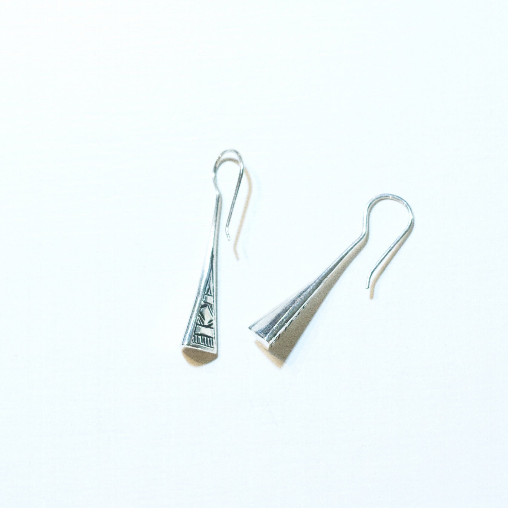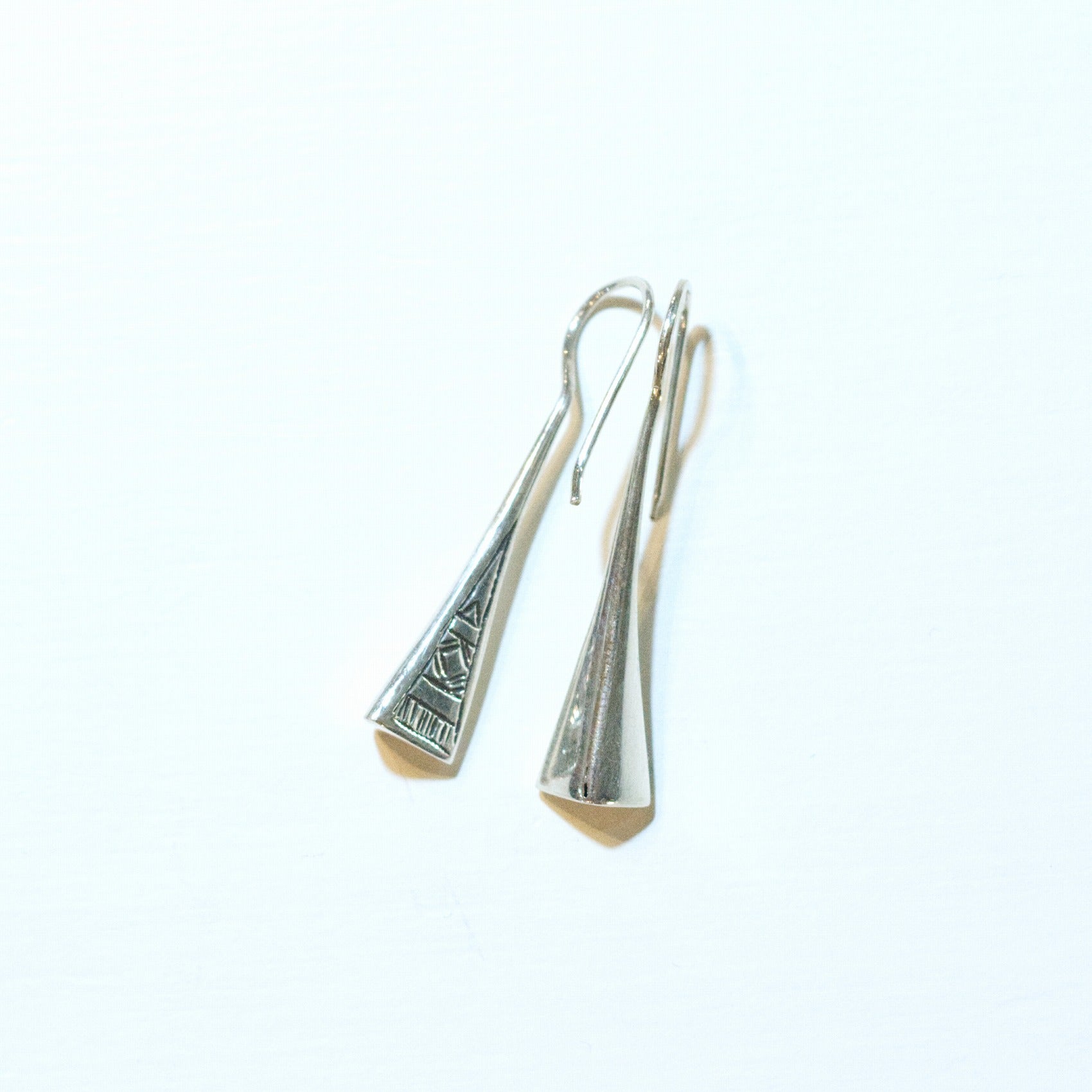 When viewed from the front, they look like simple silver earrings, but the back of the tips are engraved with Touareg-like patterns one by one.