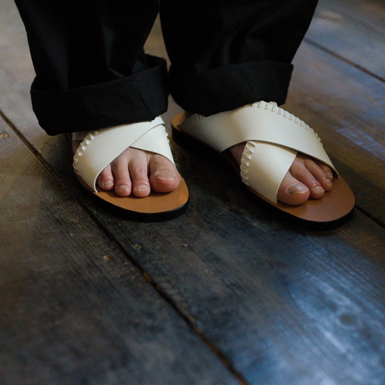 Craftsmen pass through the painstaking process of threading the leather cord through each hole by hand, and the difference in the amount of pressure applied by the hands creates a moving stitch.