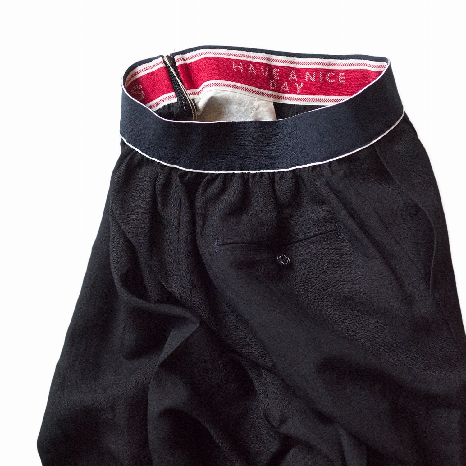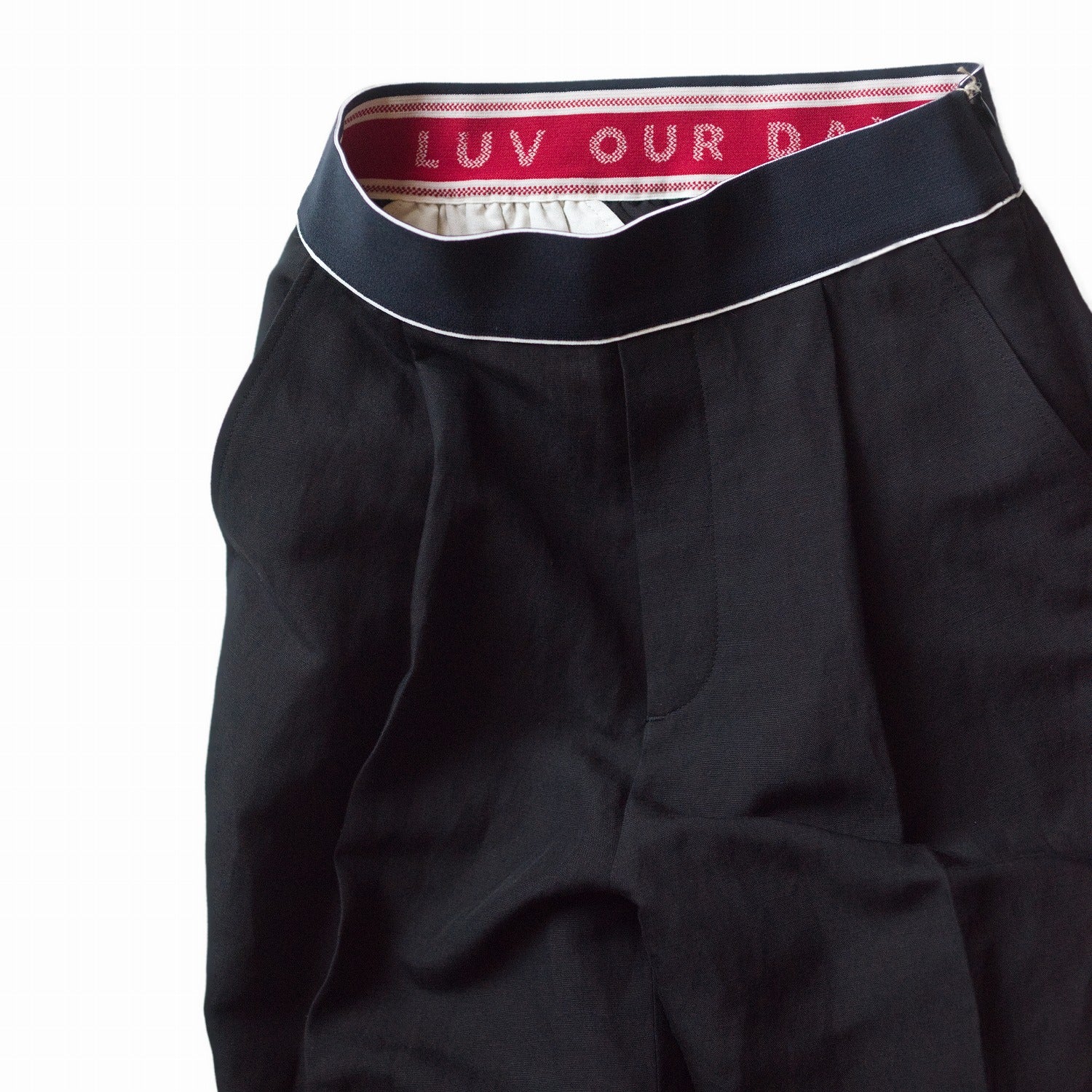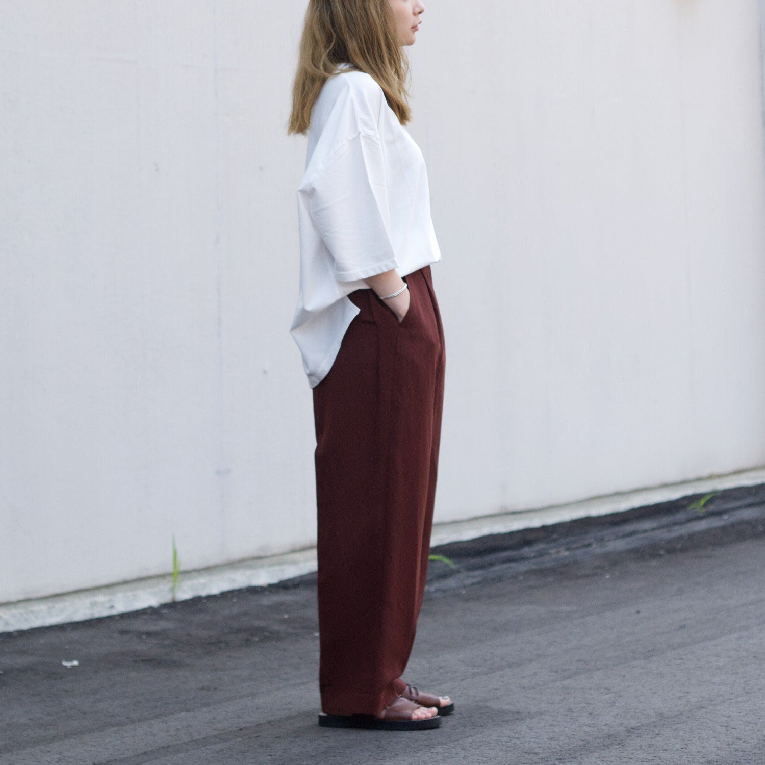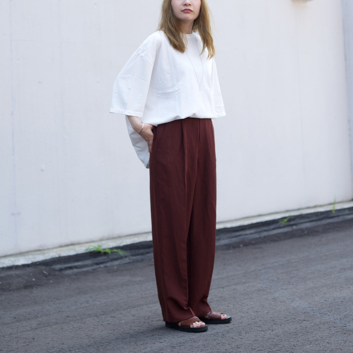 A functional piece with a slacks-like silhouette that is easy to wear and can be washed by hand at home.