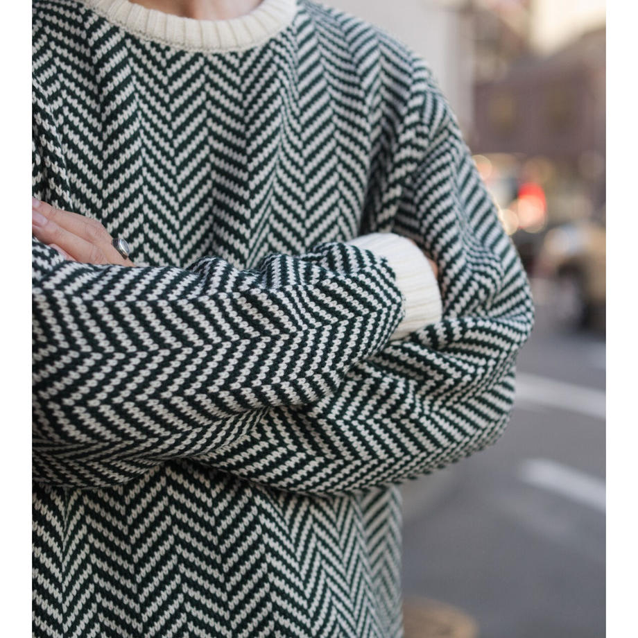 It is a Kaiki original pattern that expresses a large herringbone pattern with two colors of thread.
