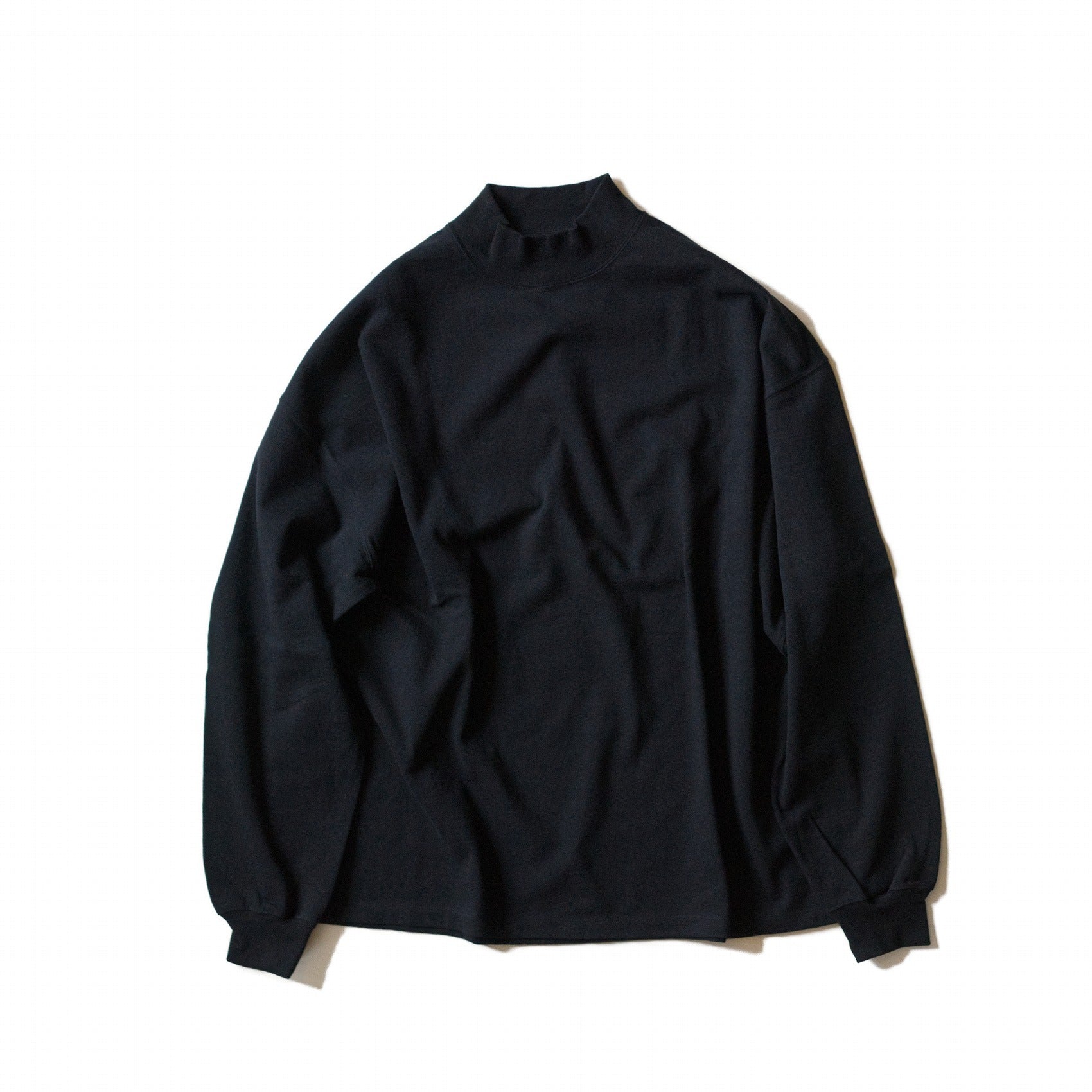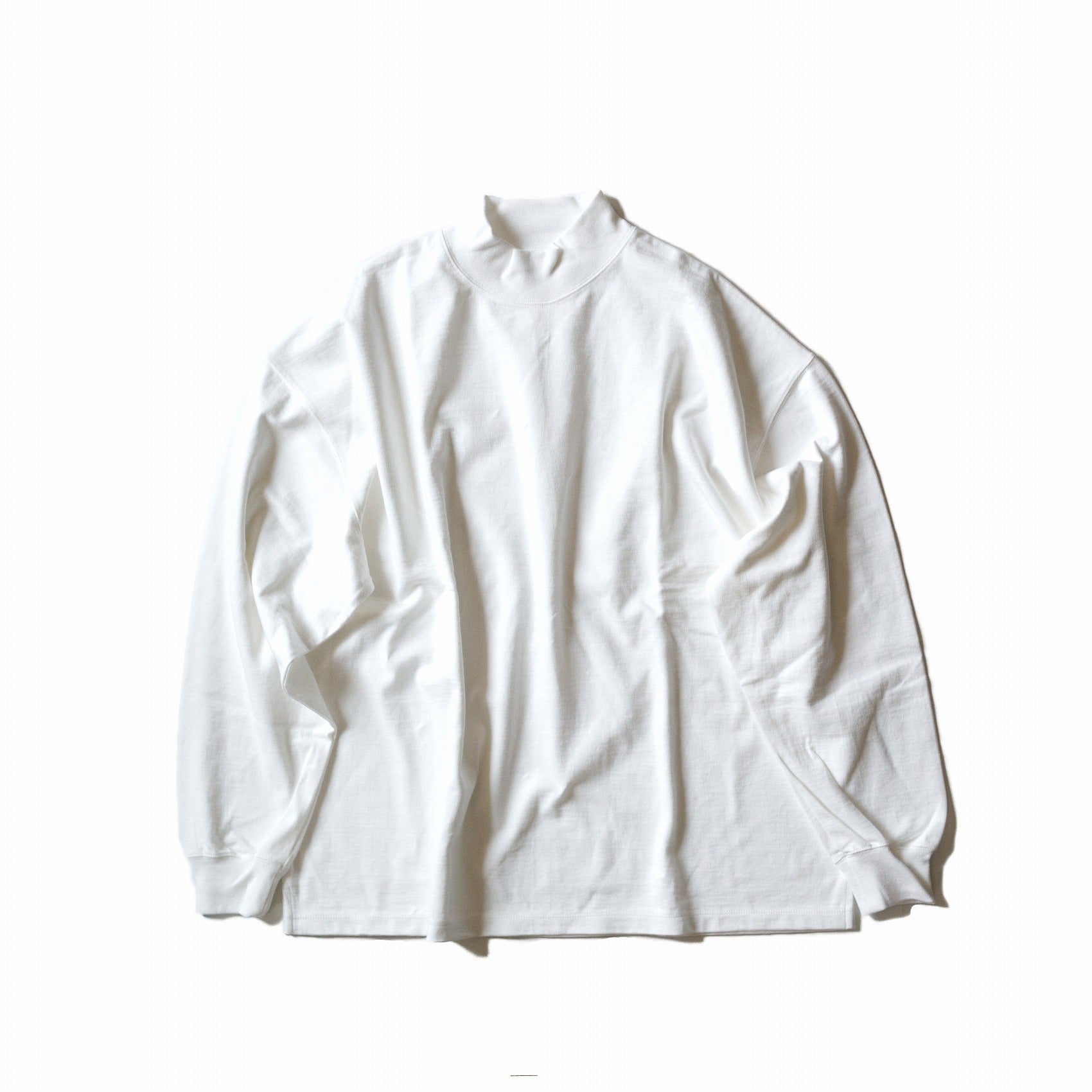 A long mock neck cut and sew made of YOKO SAKAMOTO's original jersey material, knitted using a loop knitting machine.