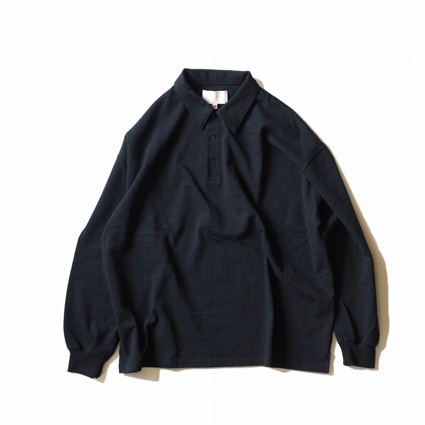 A long-sleeved polo shirt made of YOKO SAKAMOTO's original jersey material, knitted using a loop knitting machine.