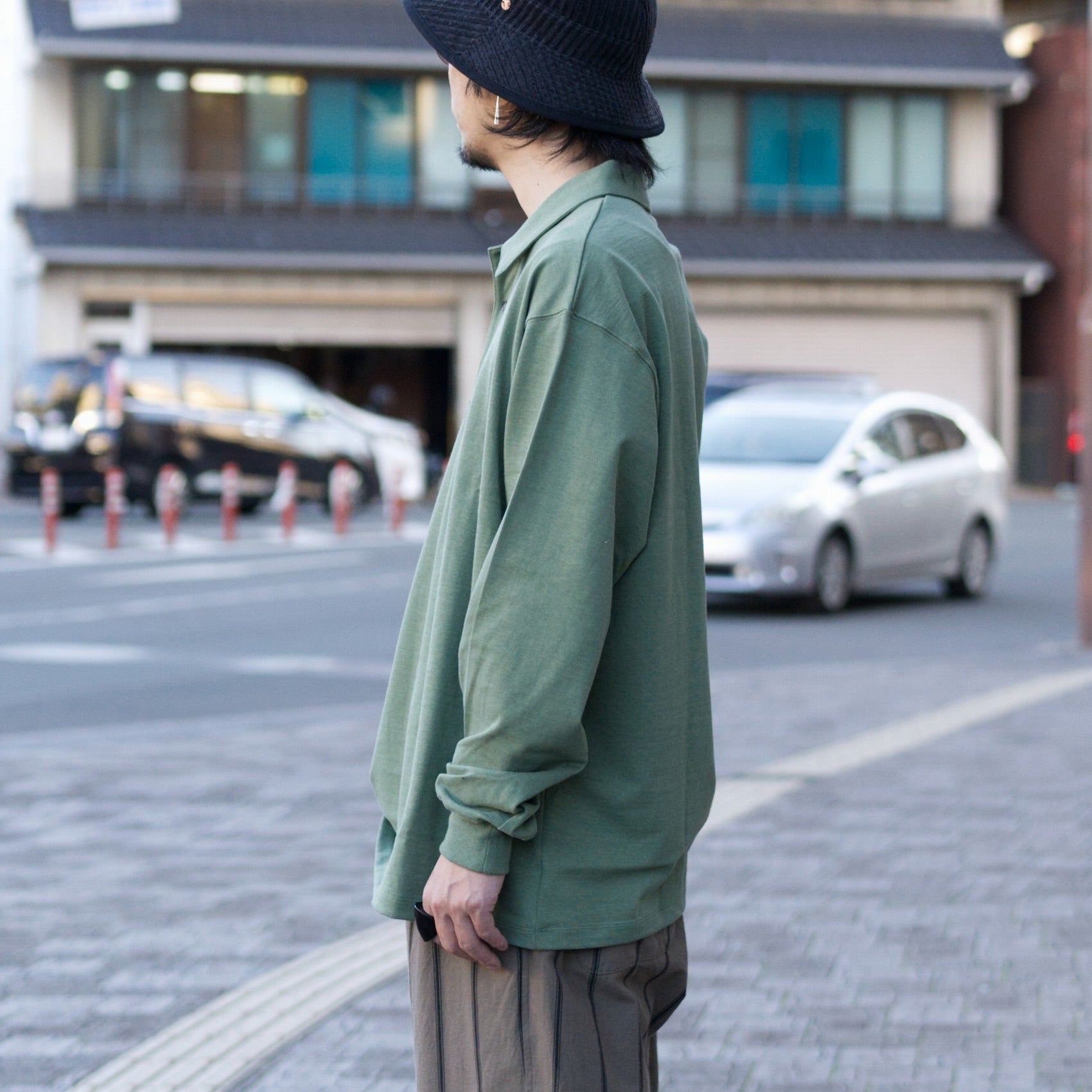 A long-sleeved polo shirt made of YOKO SAKAMOTO's original jersey material, knitted using a loop knitting machine.