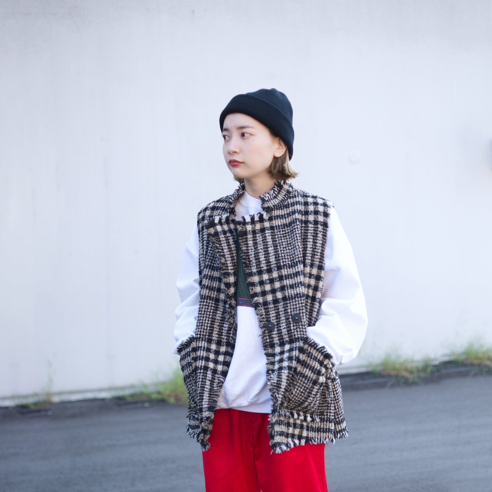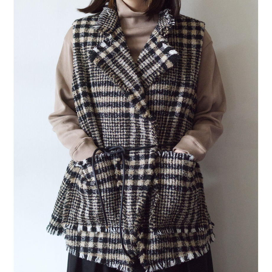 The color scheme gives a classic impression, but the edges are fringed, making it a vest with a clean impression rather than a tight fit.