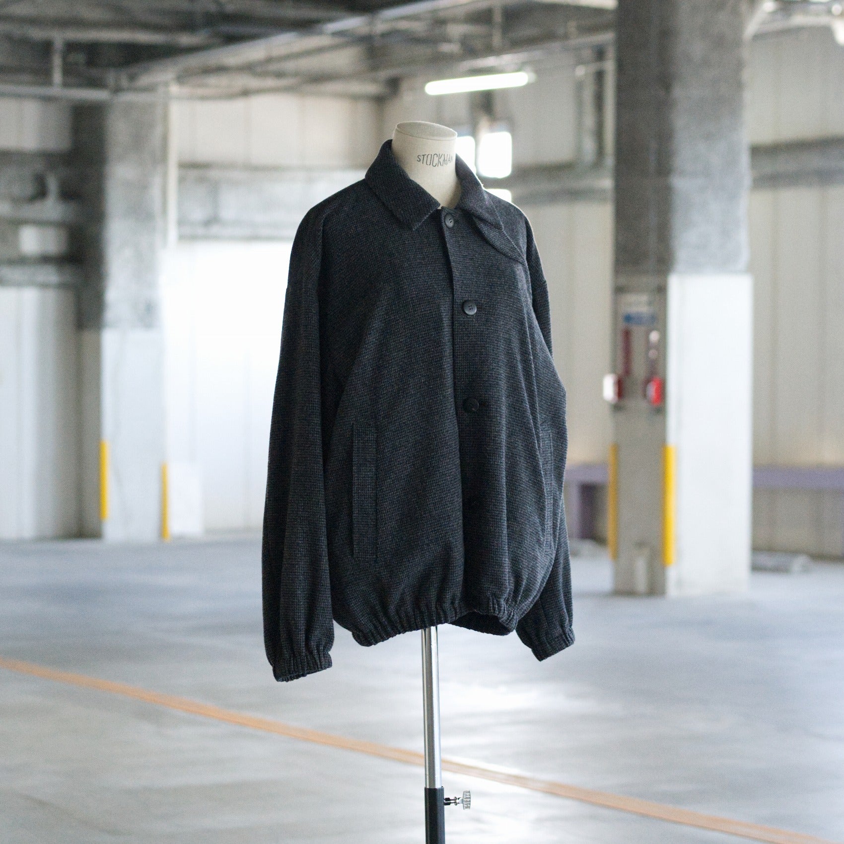 クラシックな雰囲気の千鳥格子は、ウールのトップ糸の上に綿の染糸を撚り合わせることで表現されています。