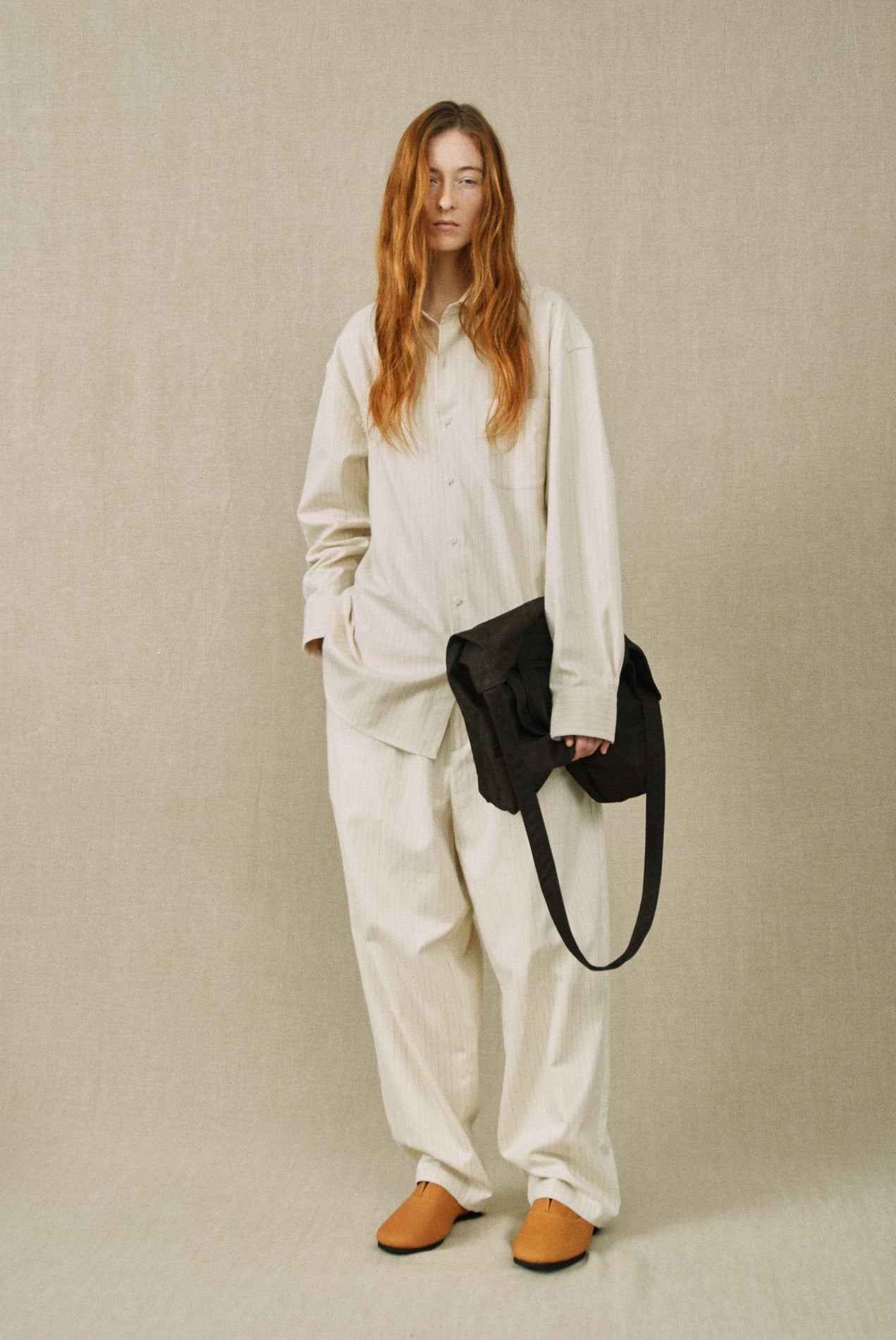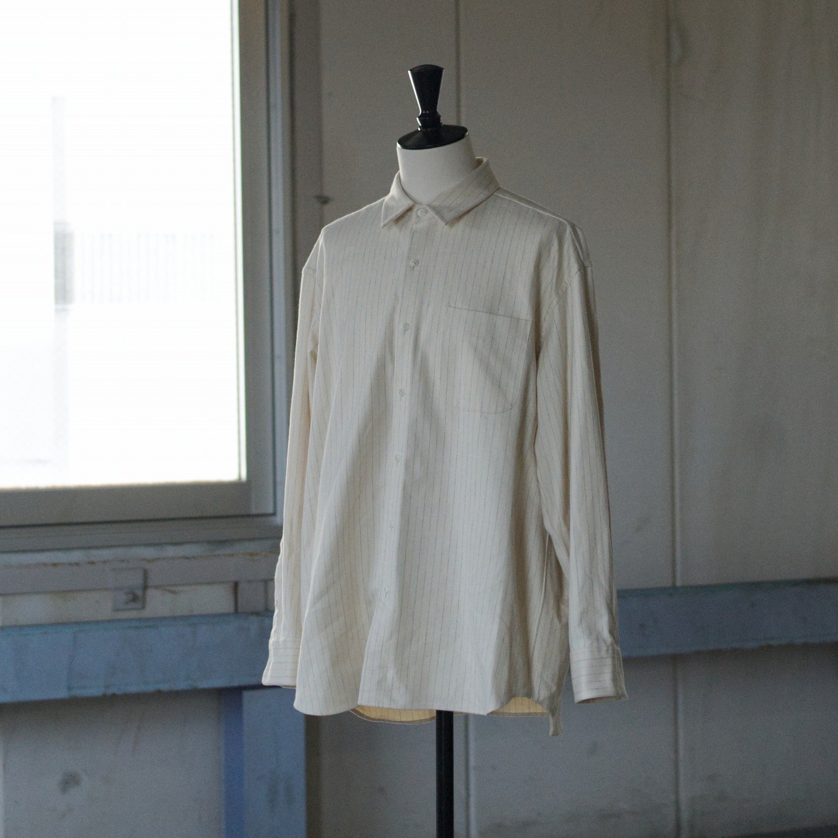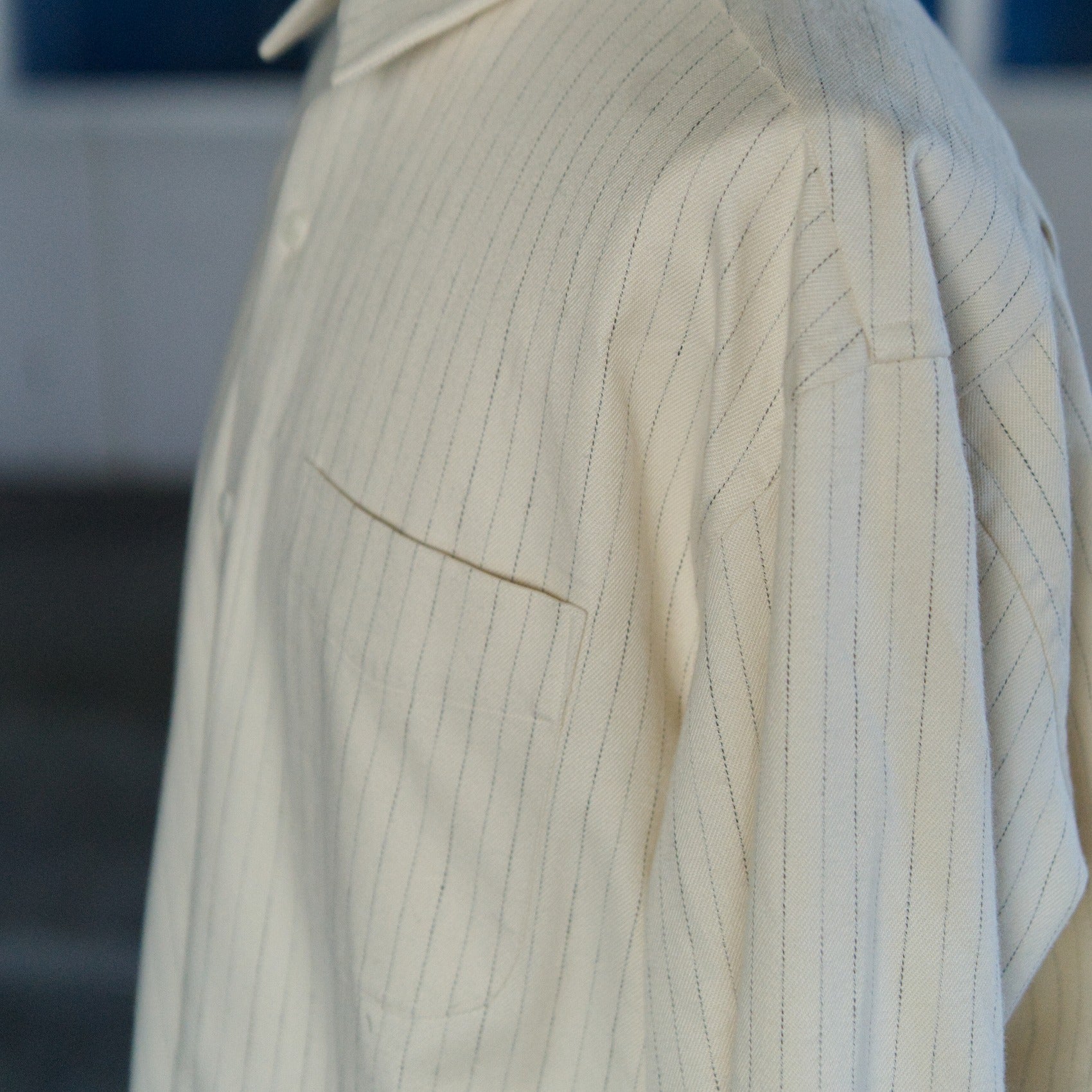 ドレスシャツらしい上品なパターンメイキングで有りながら、程よくドロップしたショルダーライン、ゆったりと広い身幅、力の抜けたルーズなサイズ感が特徴です。