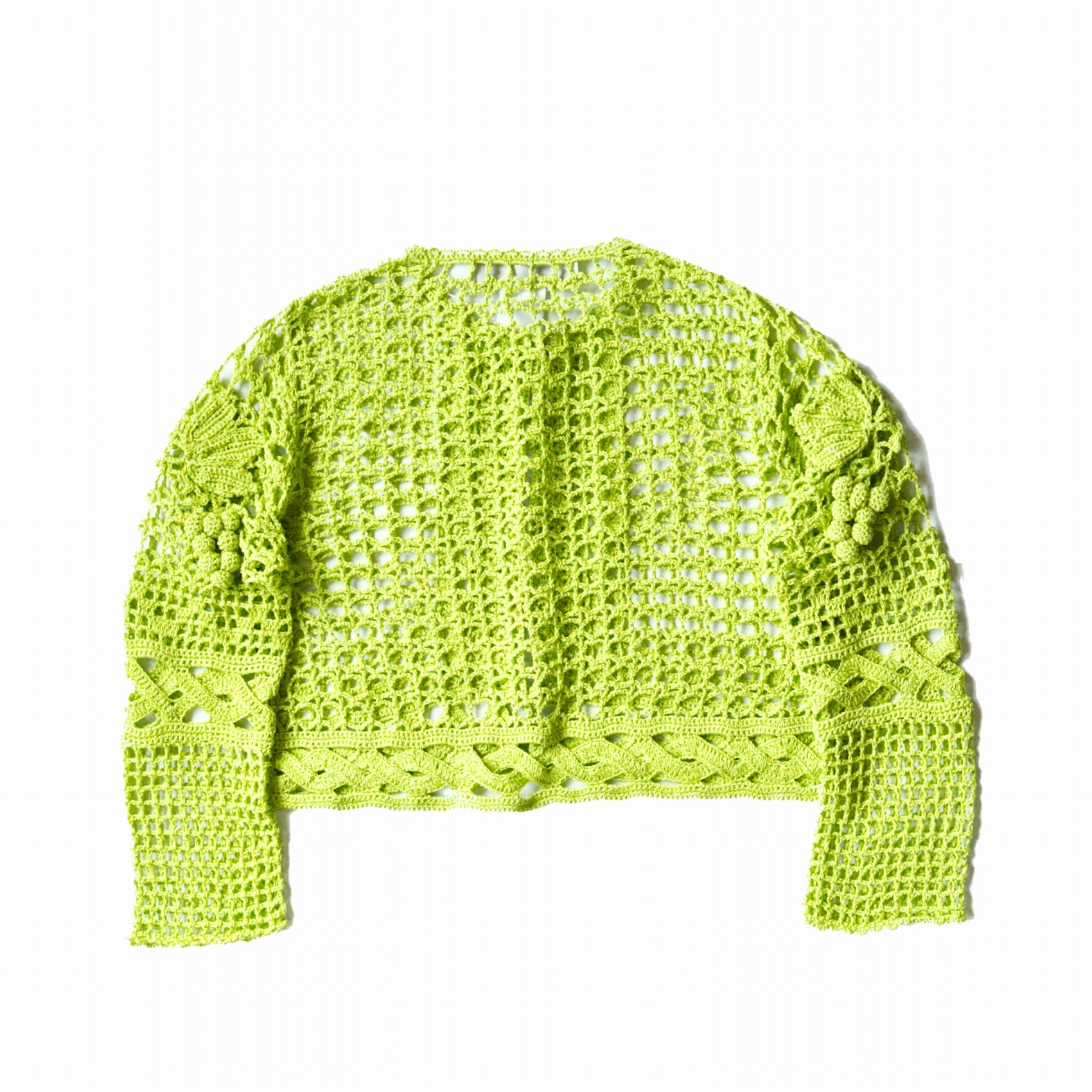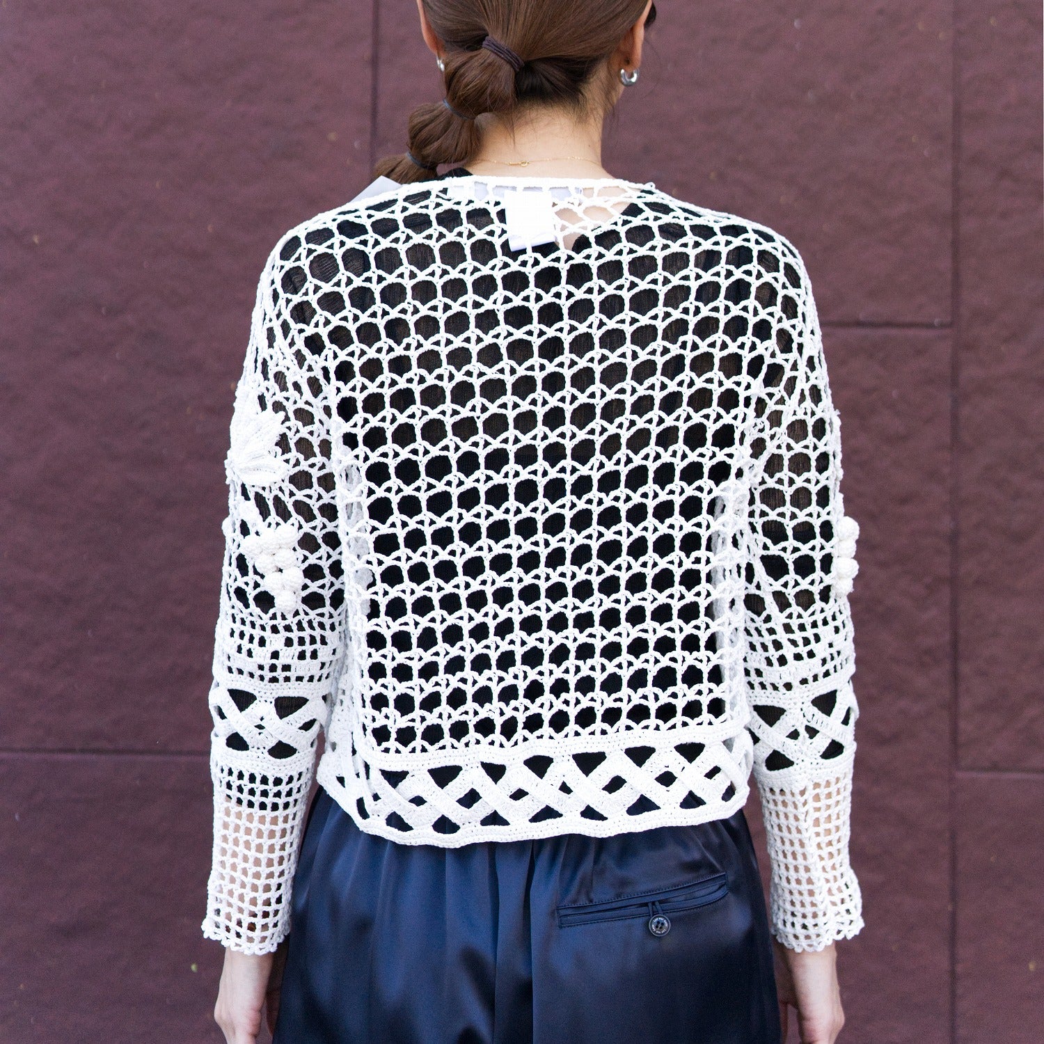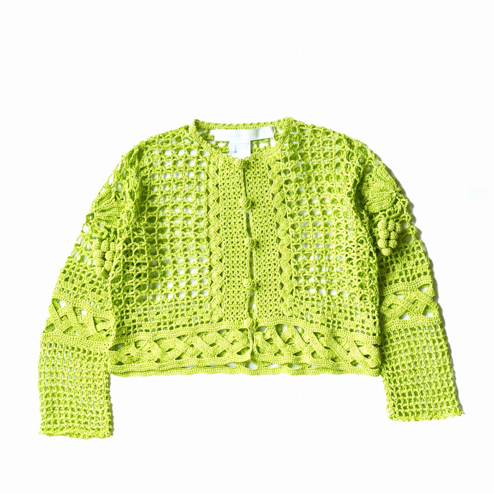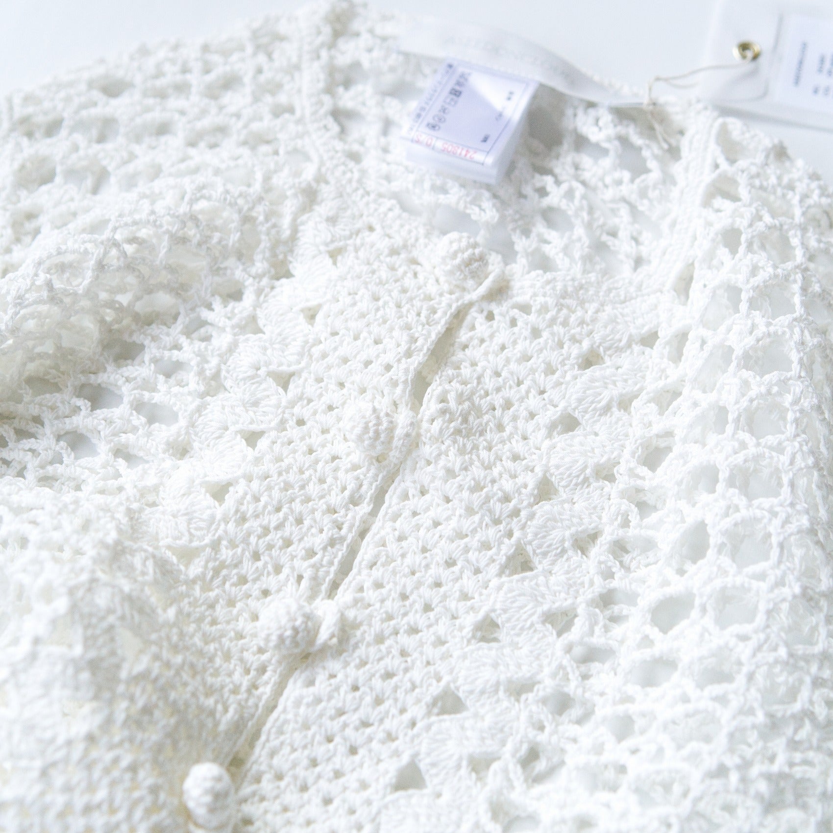 Just looking at the knitted fabric that stretches like a mesh and the spiral knitted fabric that looks like two waves will leave you mesmerized by this extremely elaborate hand knit that cannot be reproduced by machine knitting. is.