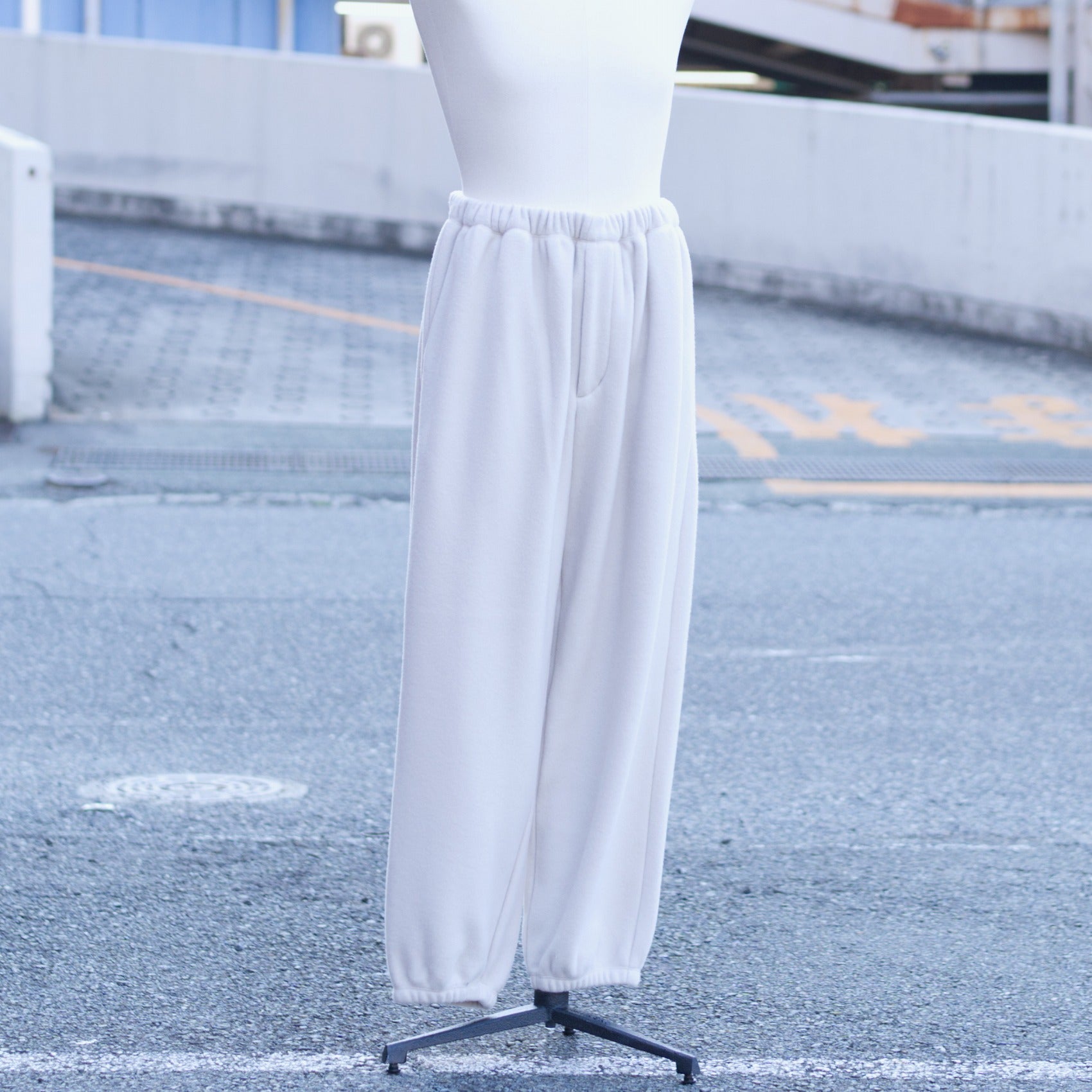 ウールで編み立てられたニットに、両面起毛と度重なる洗い加工を施し、ウール100%でありながらも、フリースの毛羽立ちやふくらみを再現したフリース素材。