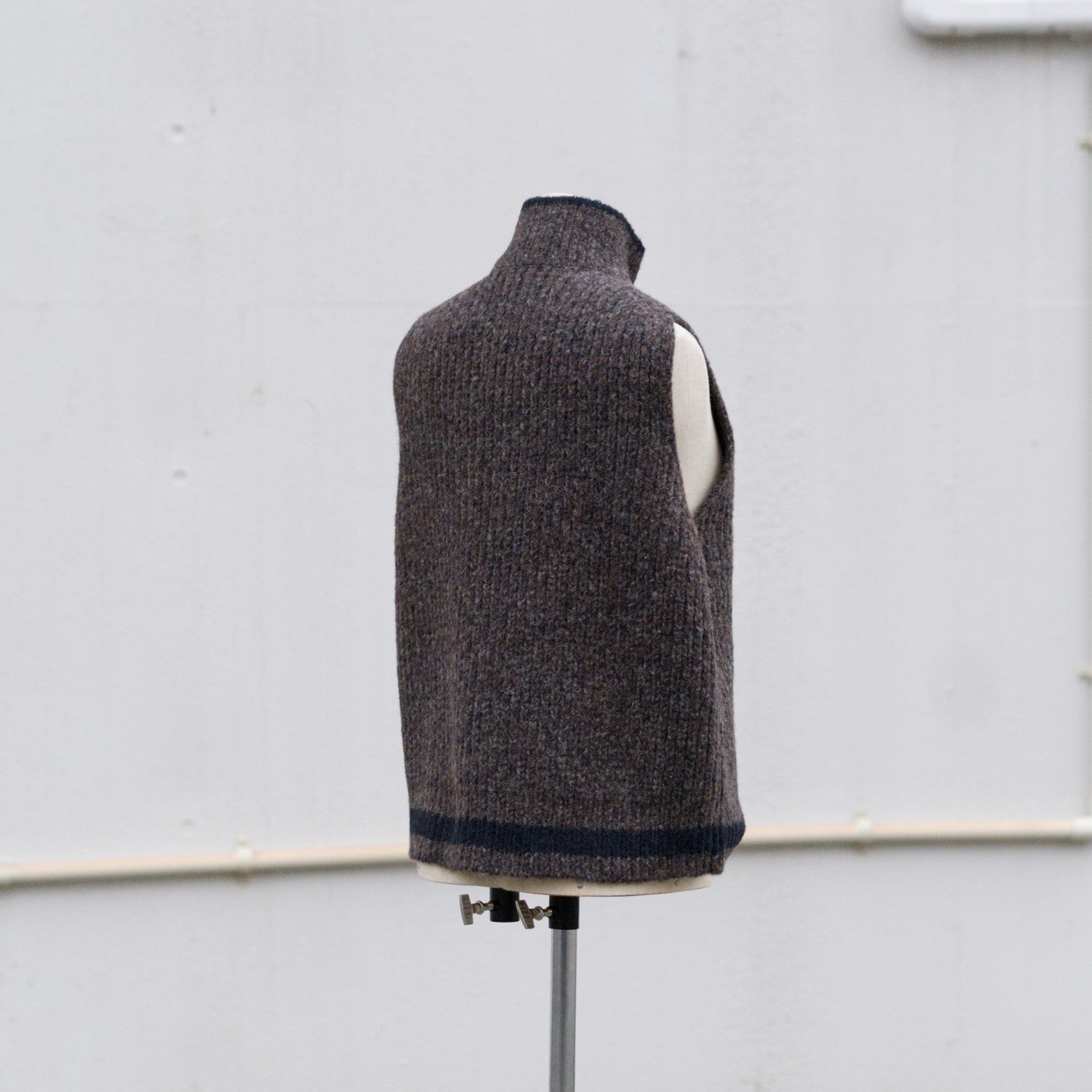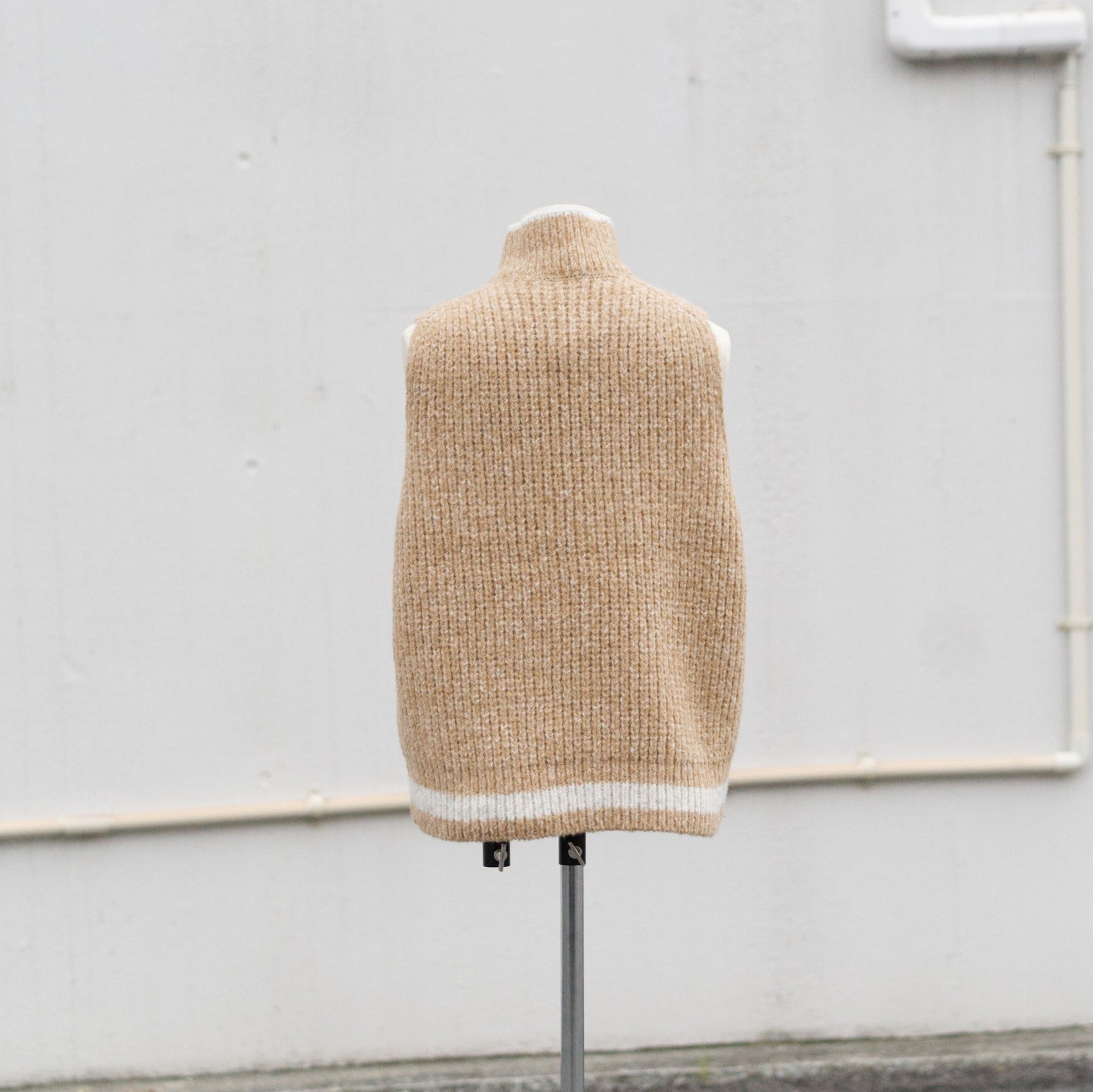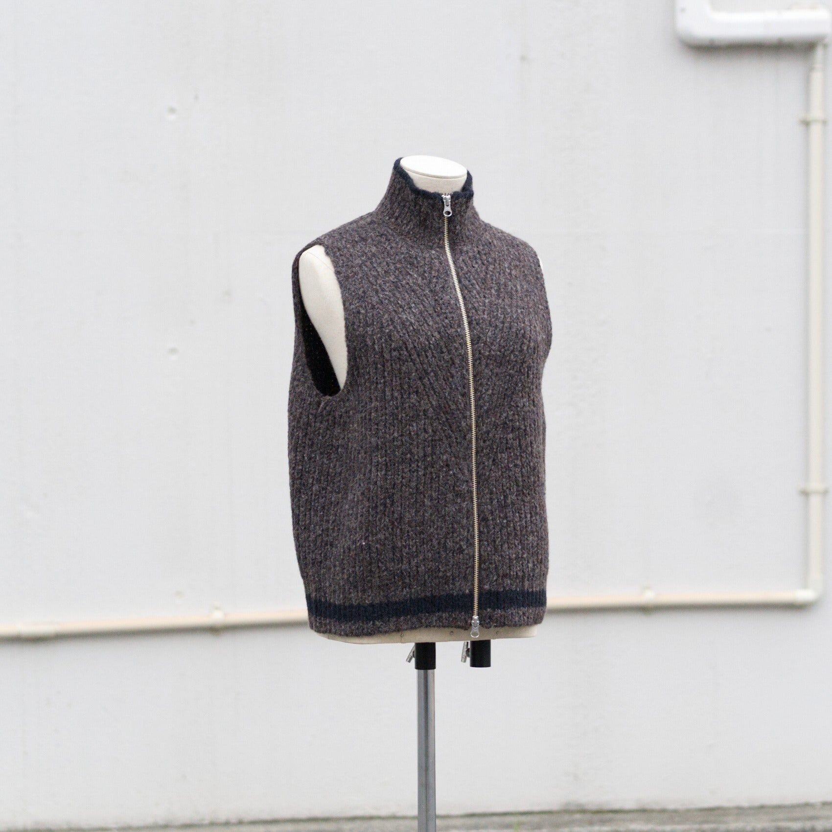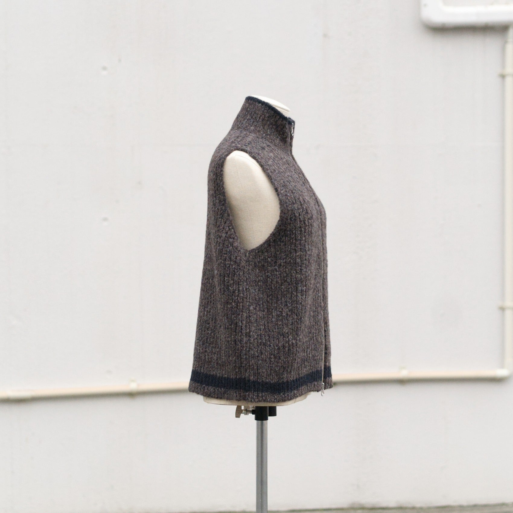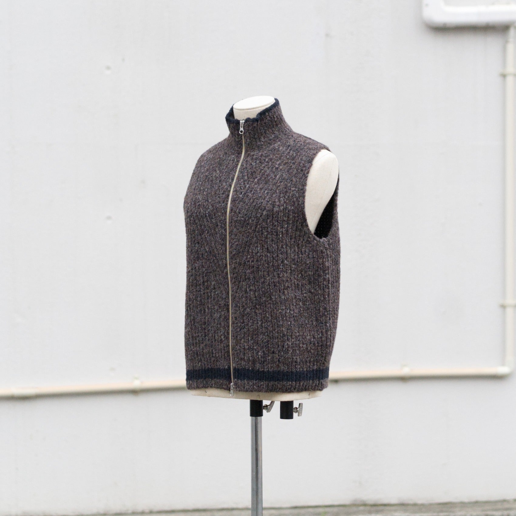 ZIPベストというカジュアルなアイテムながら、あえて柔らかな印象のニット素材で製作することで、品のよさも兼ね備えたアイテムです。