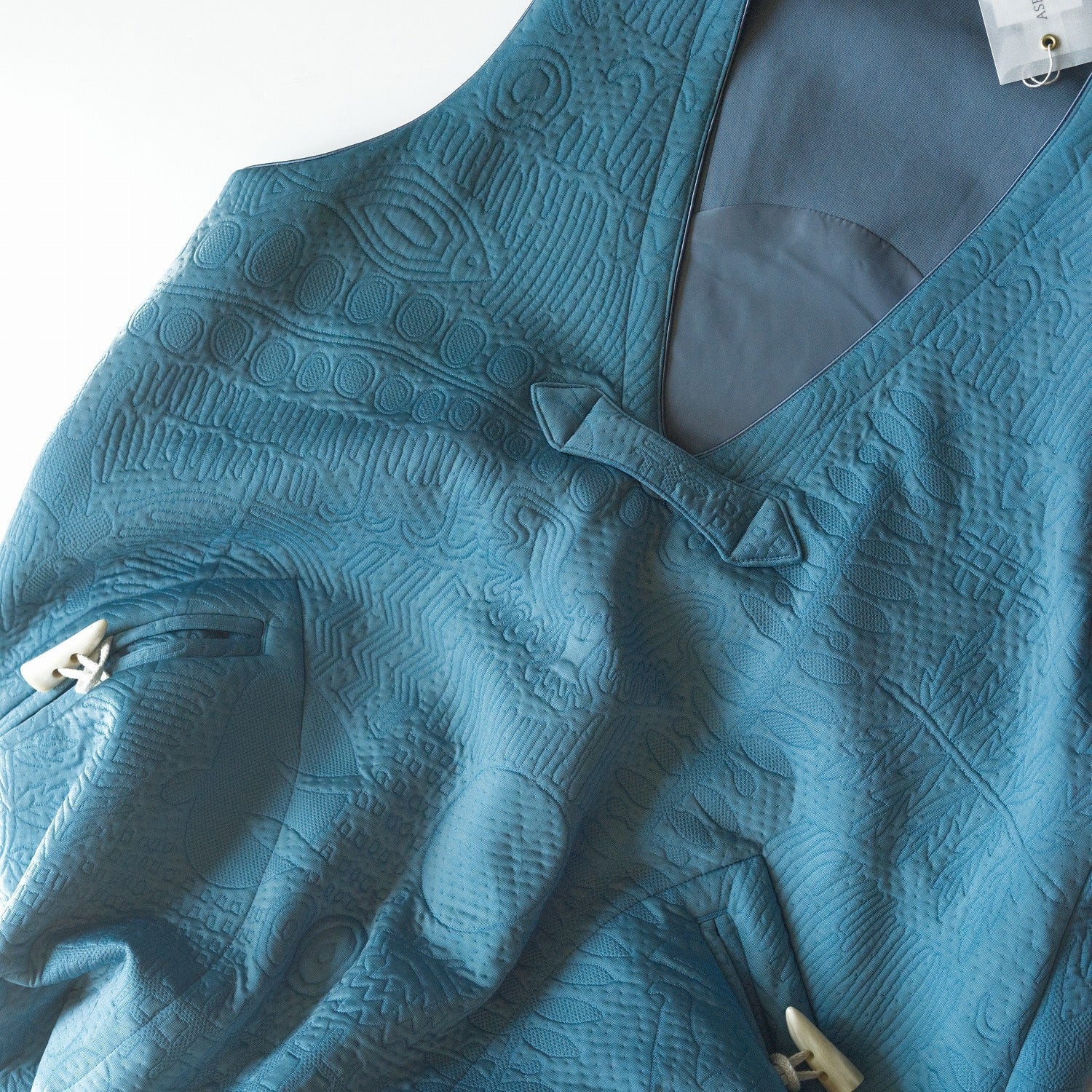 今回特別に製作されたキルト生地を贅沢に使用した存在感のあるドレスです。