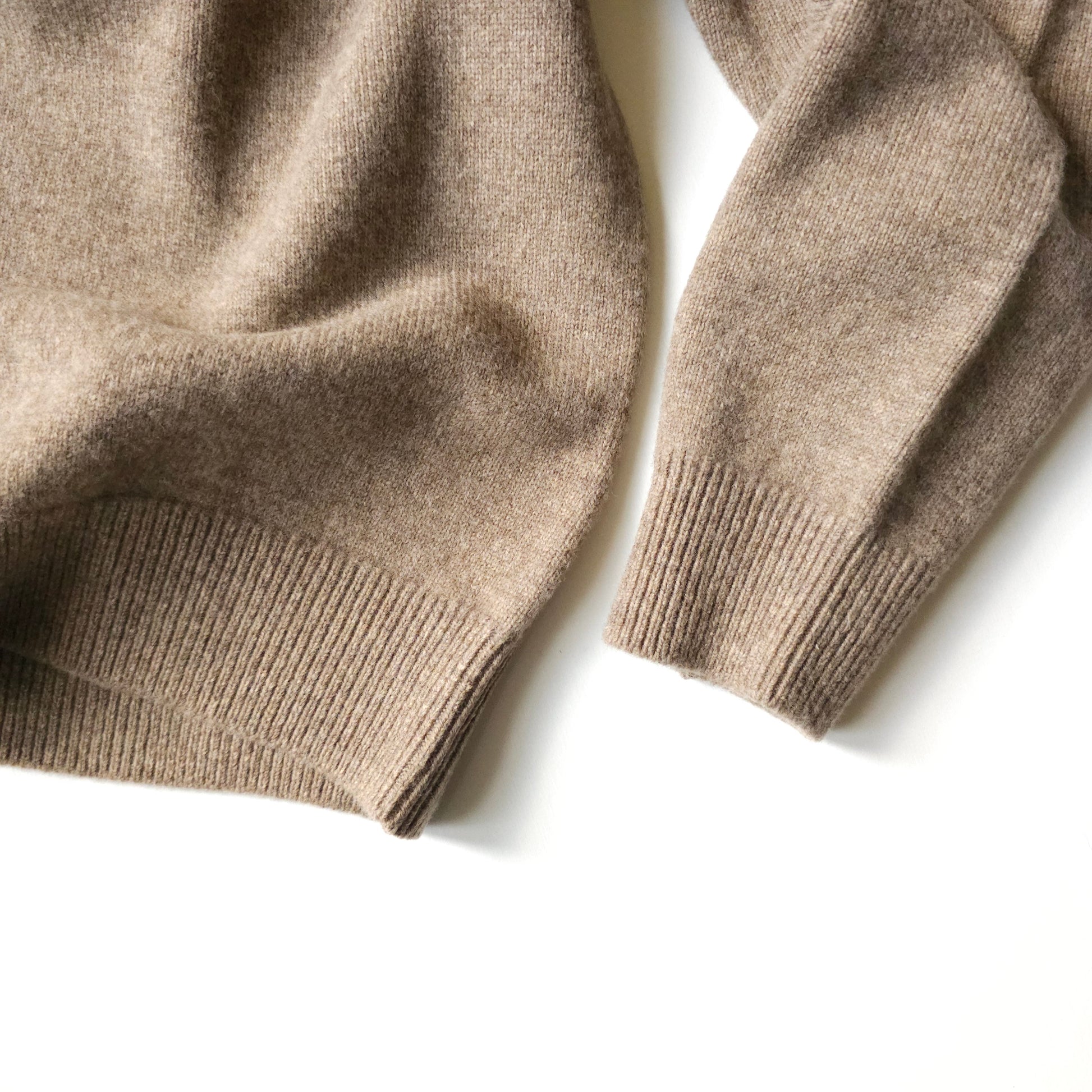 紡績は、カシミアの紡績を主に行っている大阪府の泉大津にある工場にて行い、山形県のニット工場にて設計から編み立て迄を行った、拘りの詰まったオールジャパンメイドのニットです。