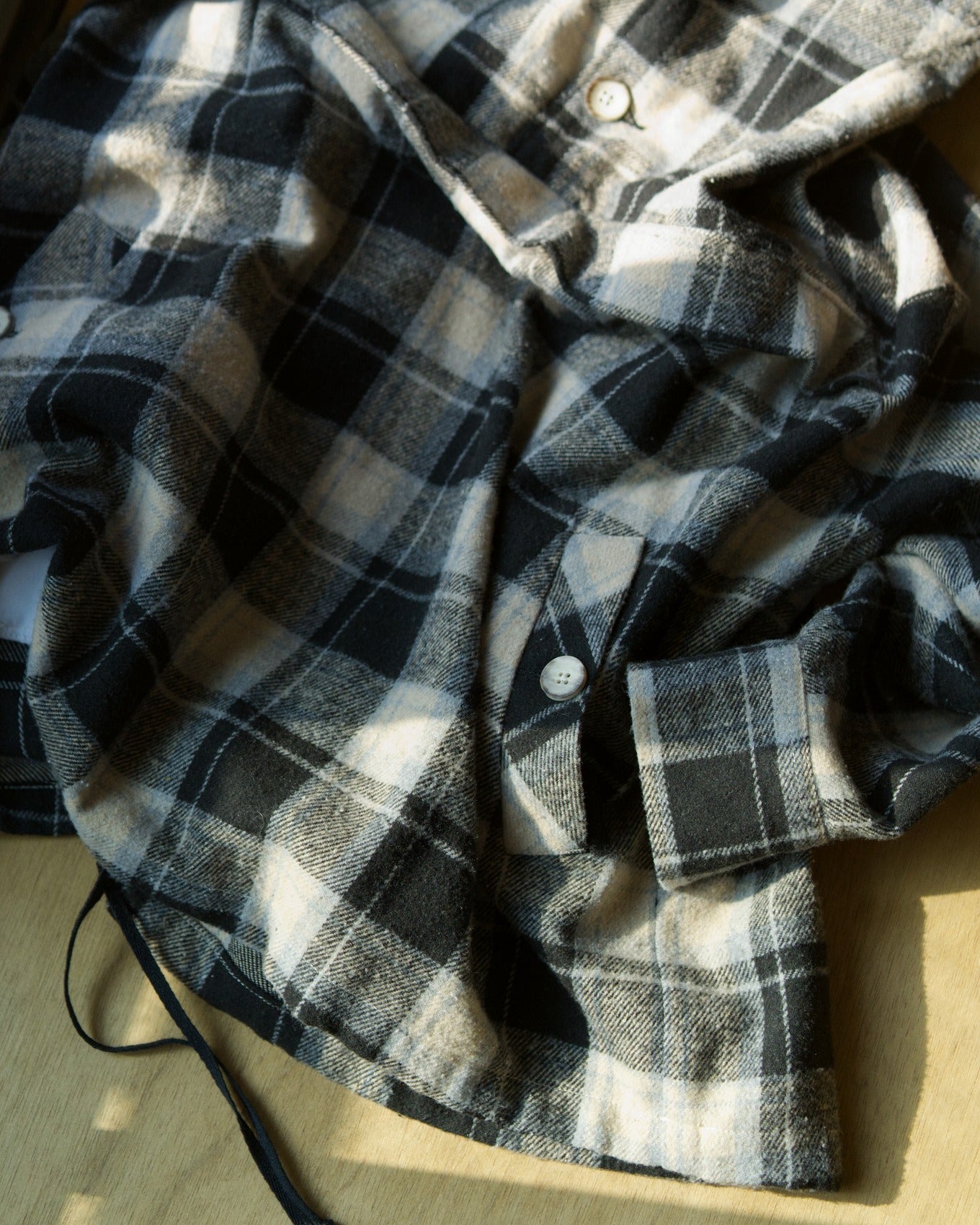 昔からあったようなくたり感のあるものにしたかったので、起毛感のある懐かしい色味のチェック素材を採用しました。