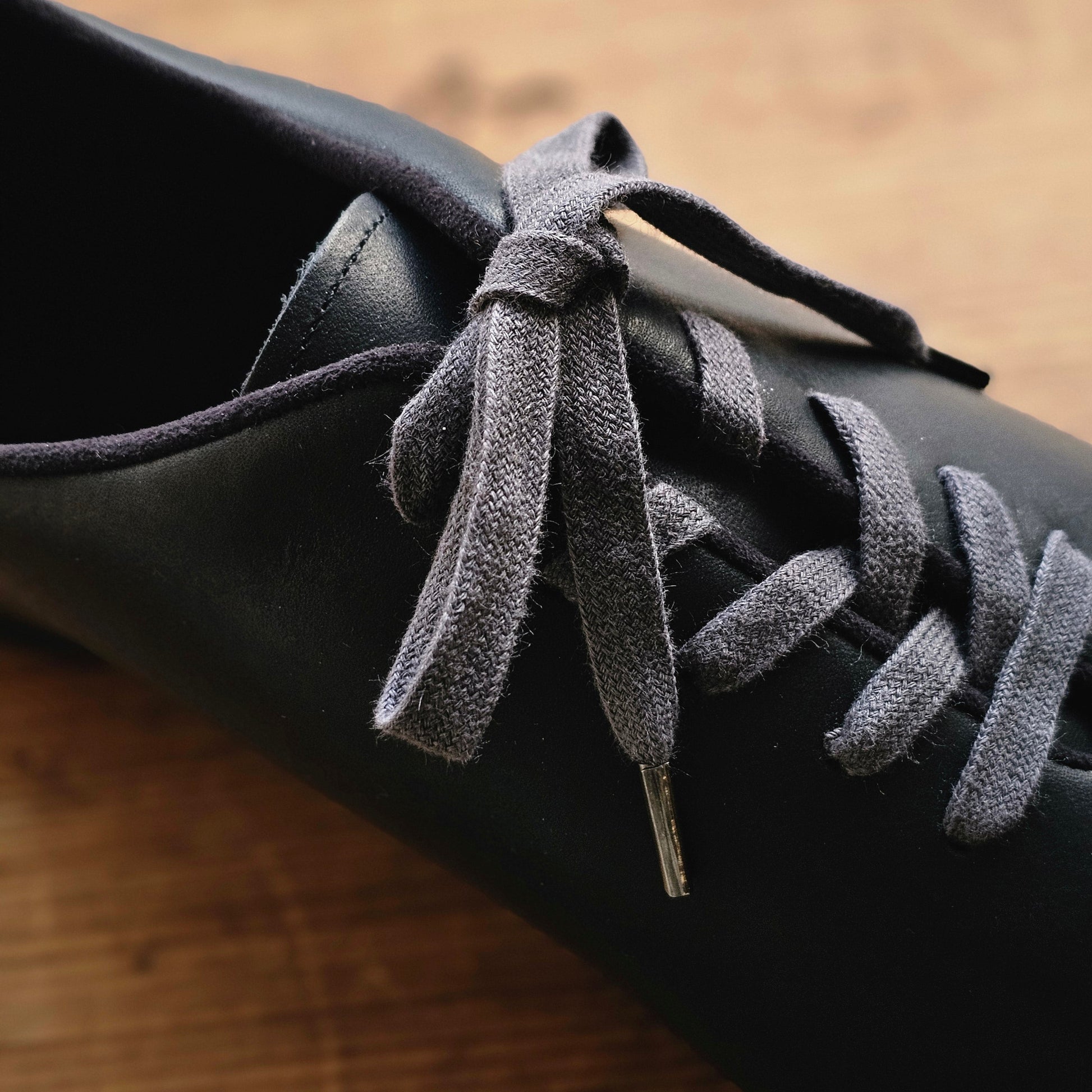 京都の歴史ある染め工場にて、熟練の職人が一点一点手染めを行ったスペシャルな靴紐が付属します。