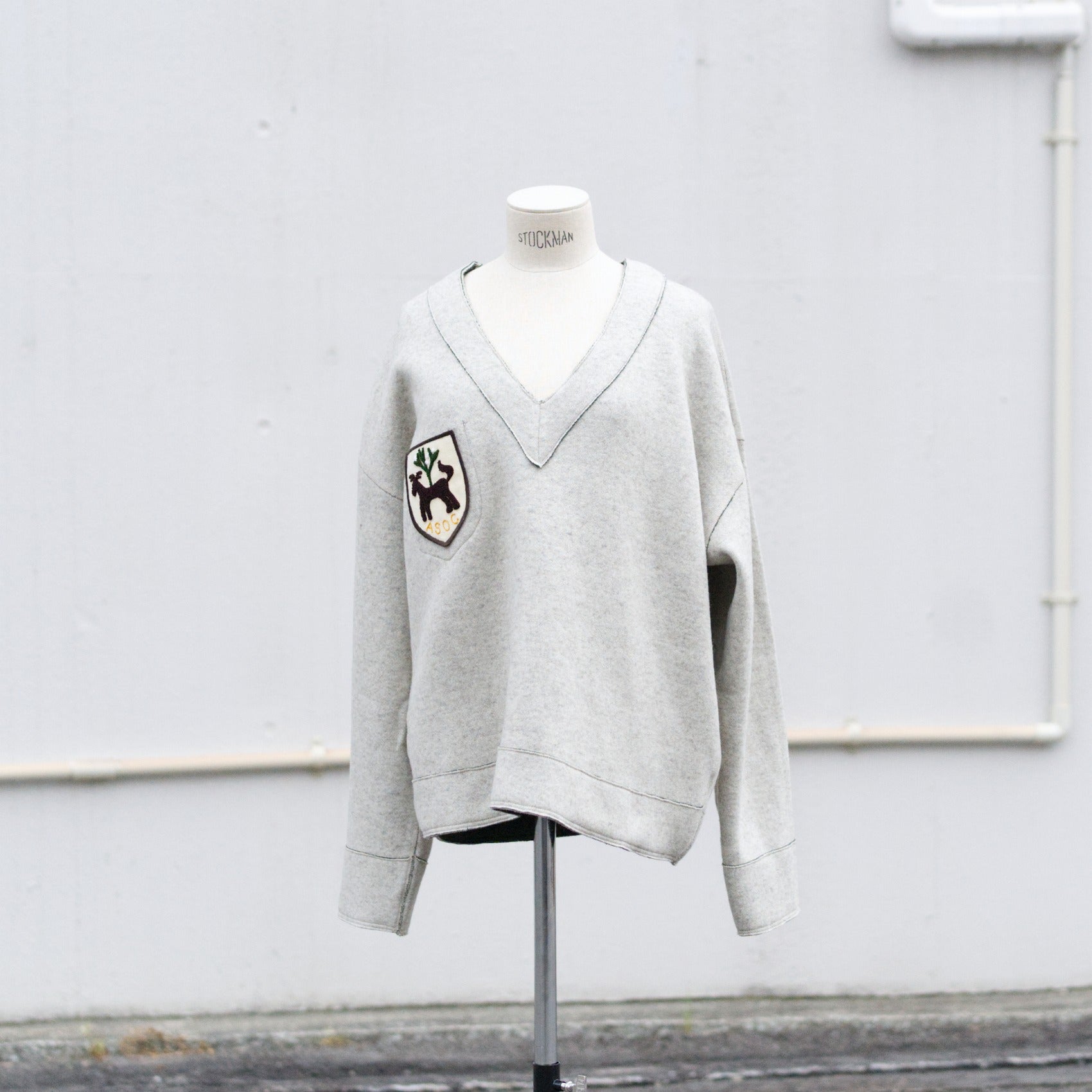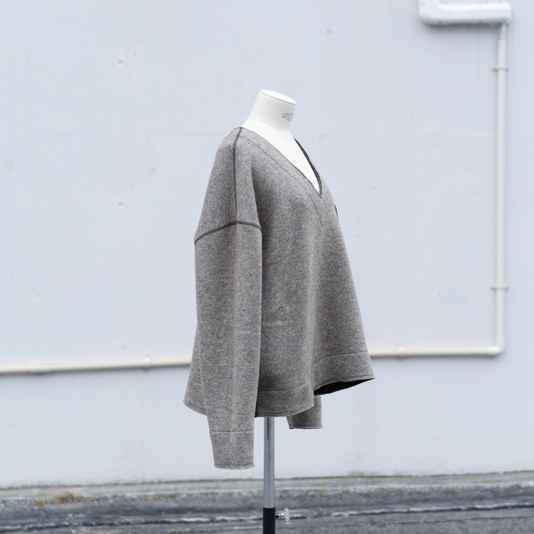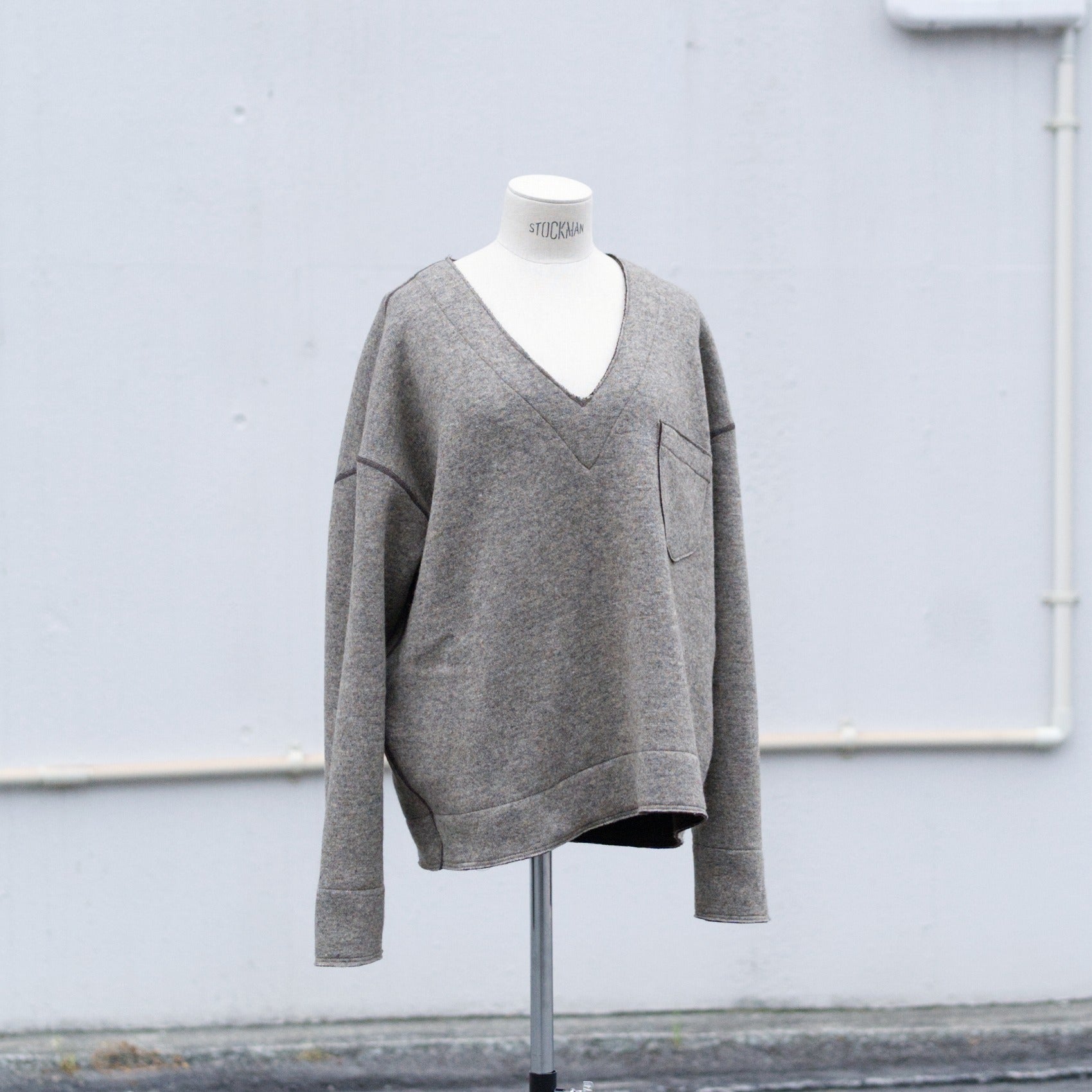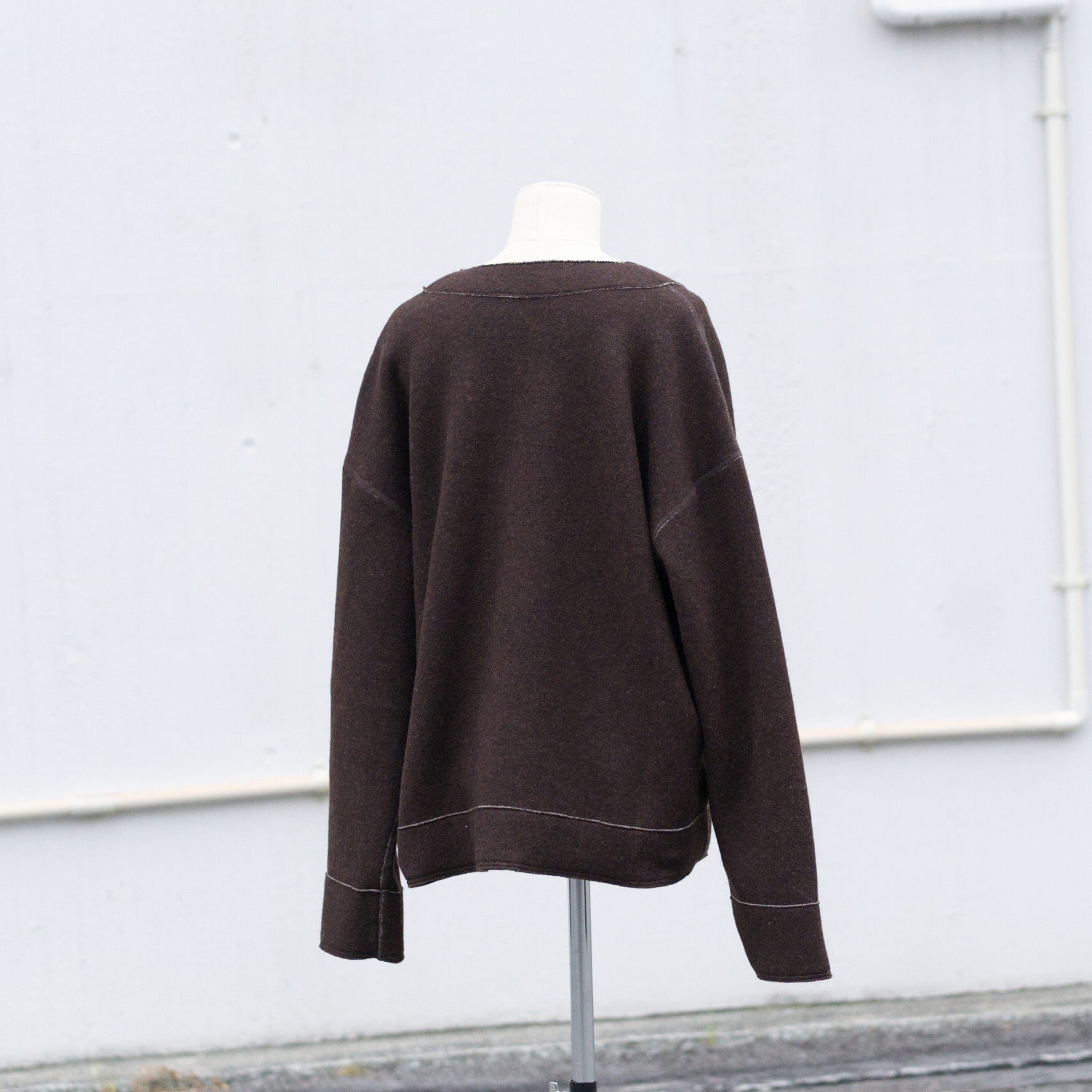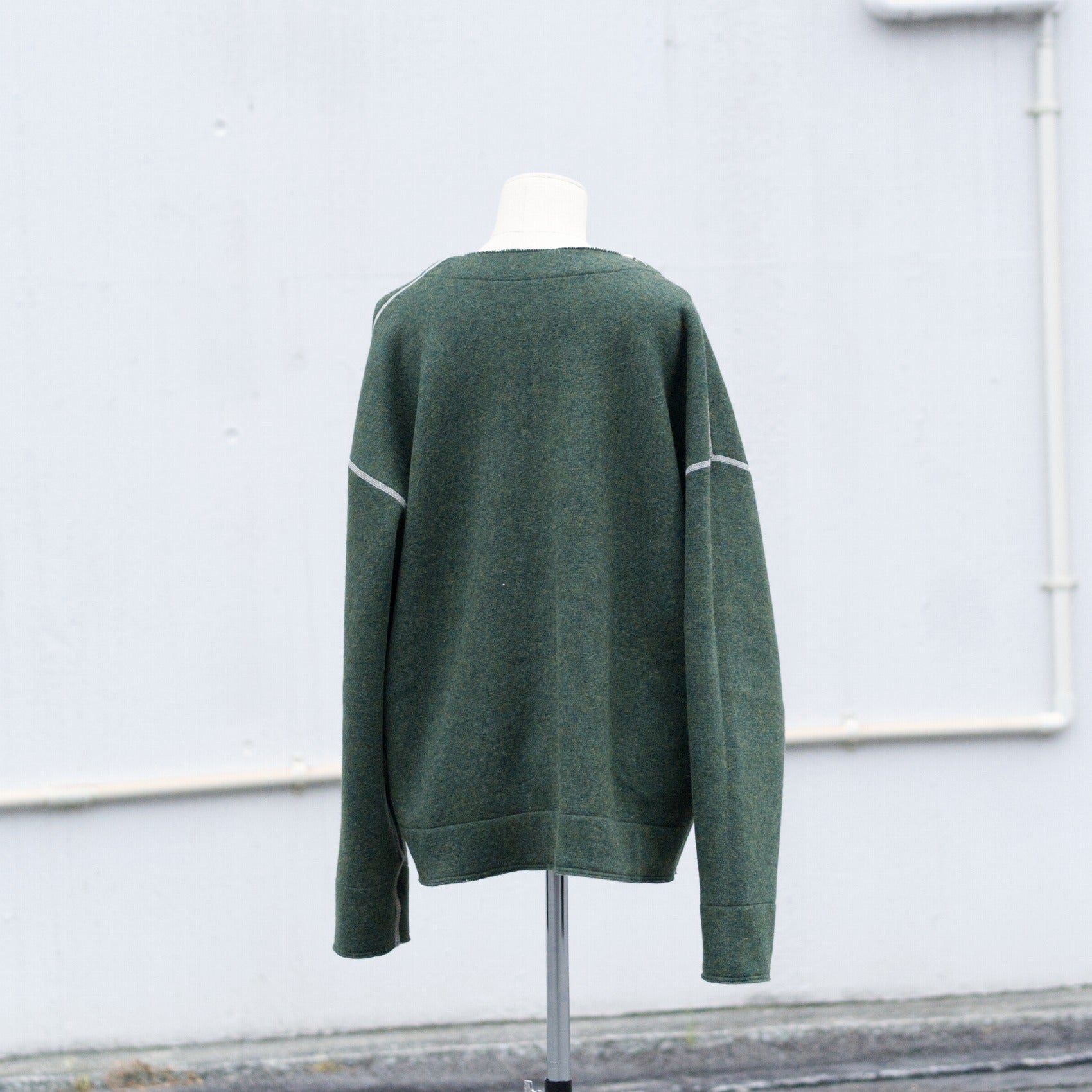 ざっくりとしたV字のネックラインですので、寒い日にシャツやカットソーの上から着れるサイズ感です。