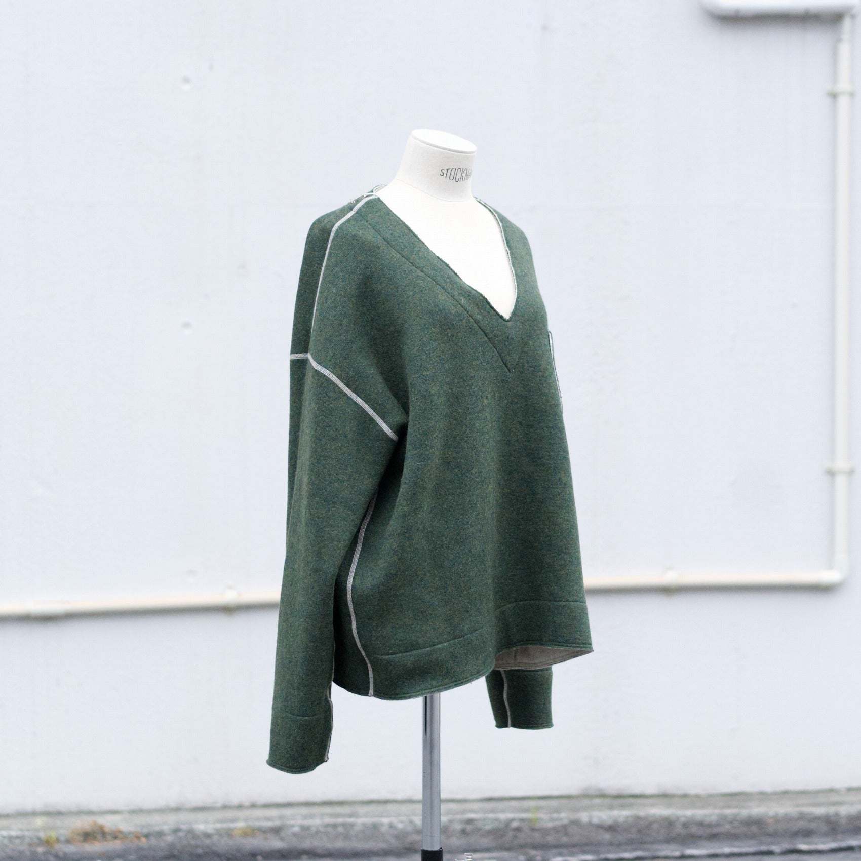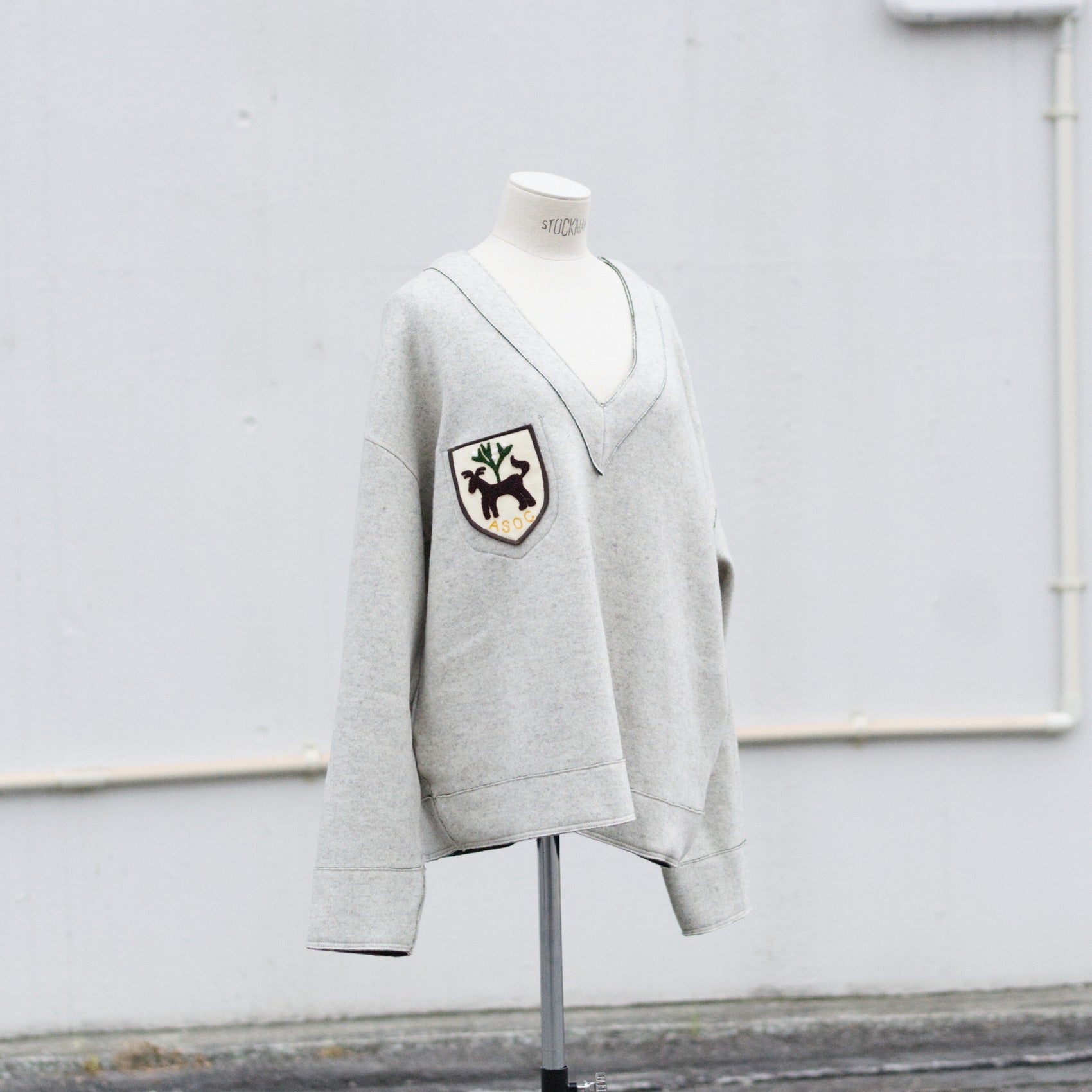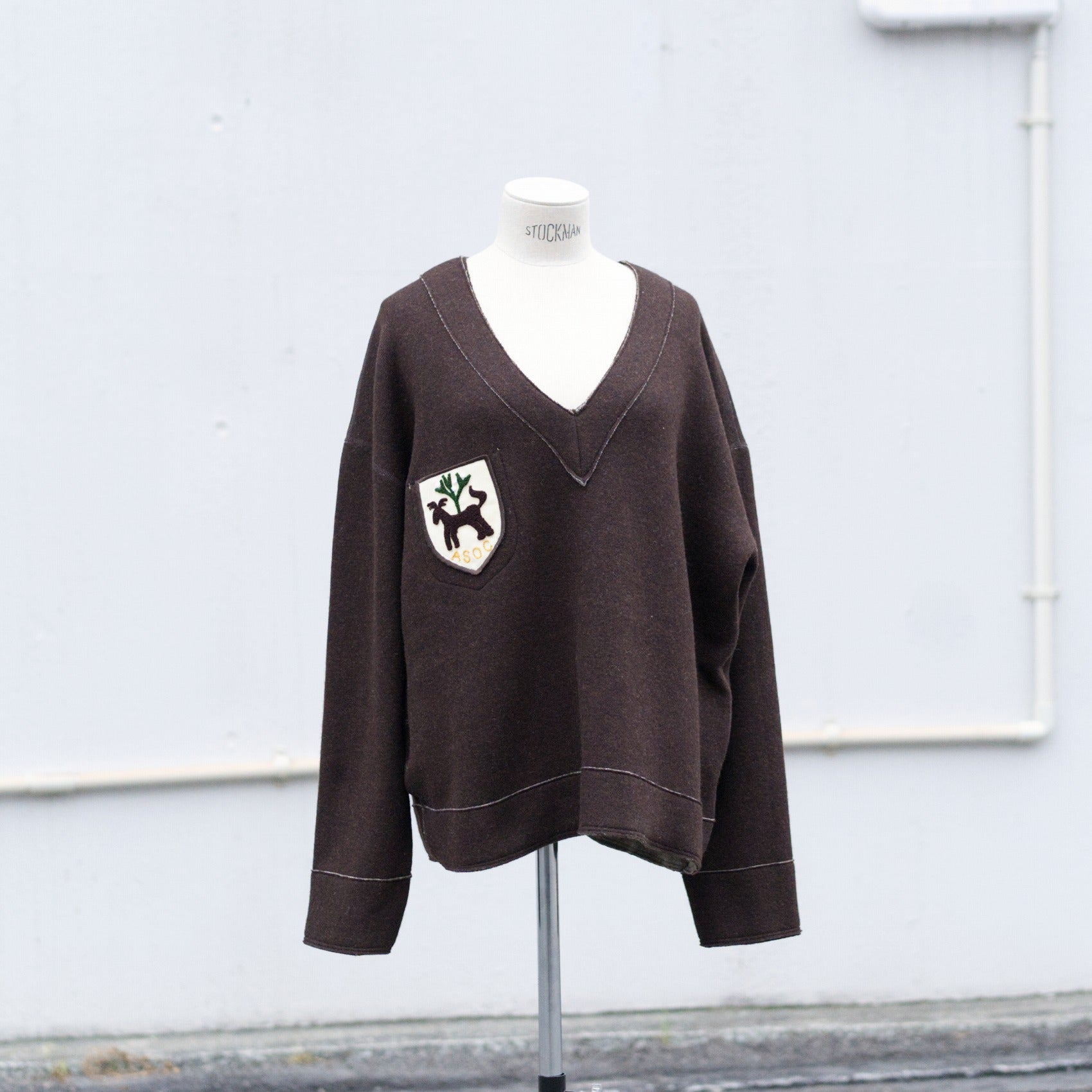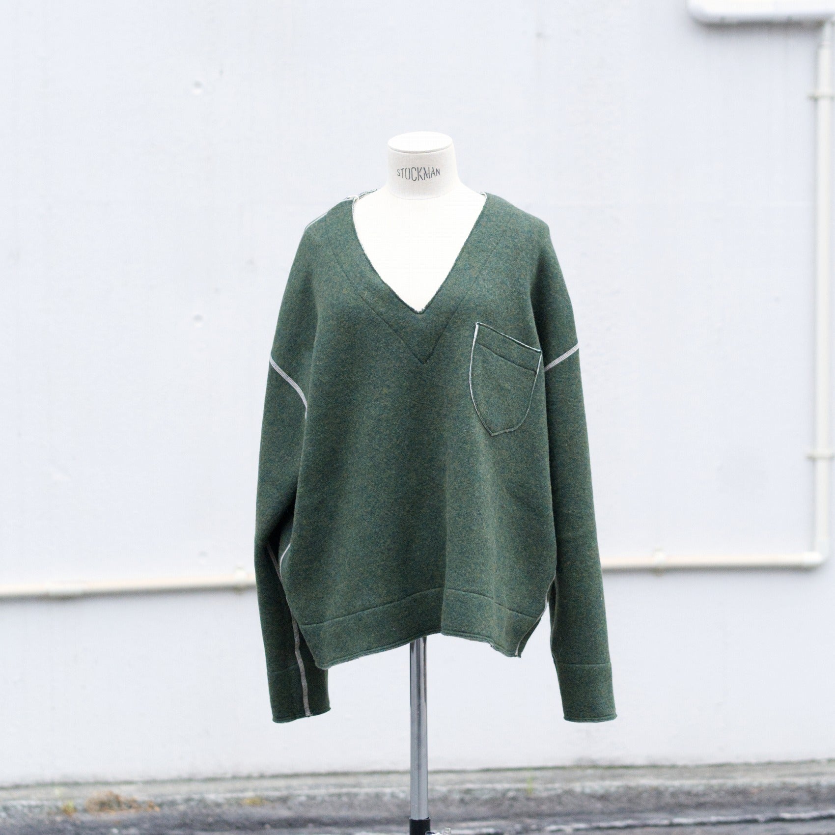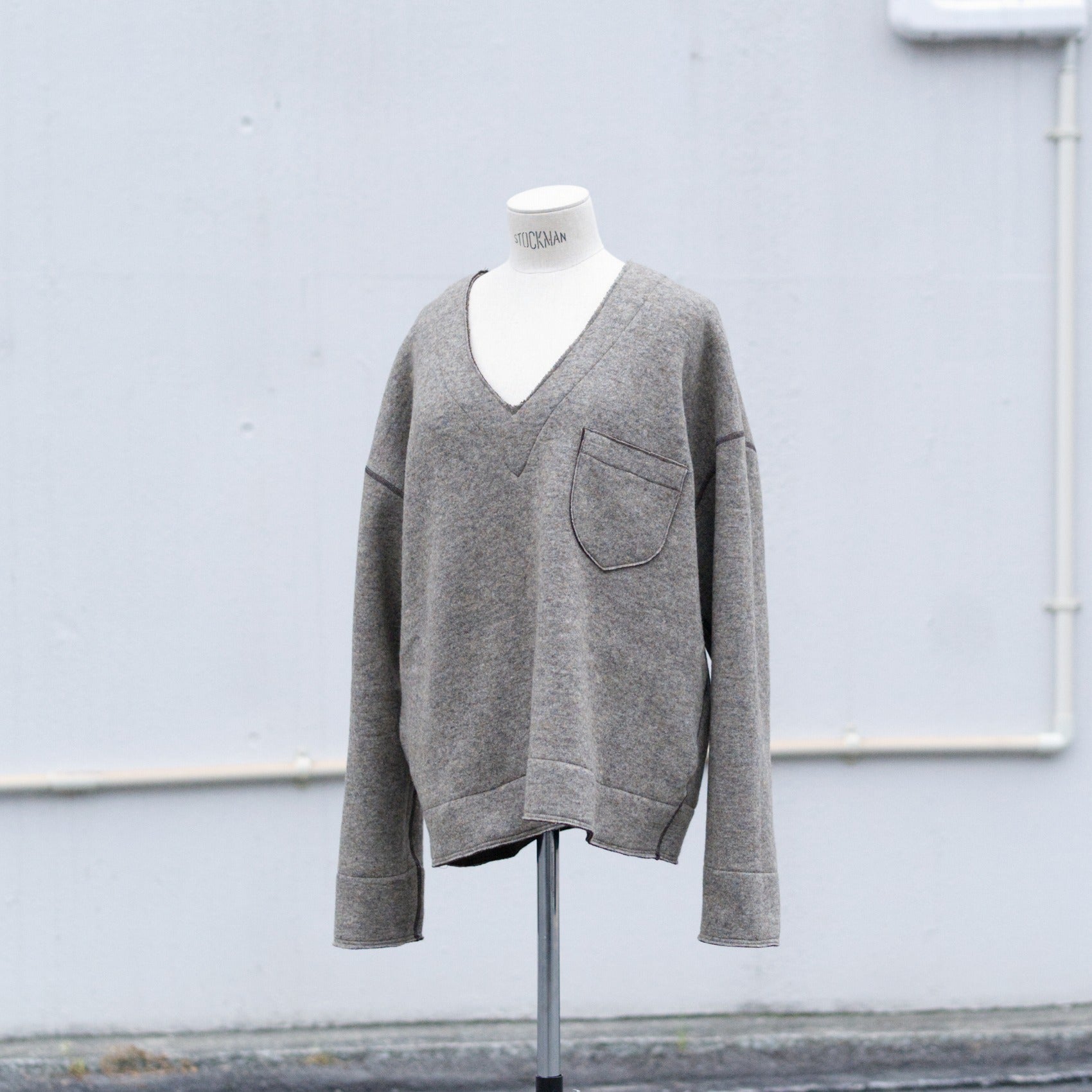 ざっくりとしたV字のネックラインですので、寒い日にシャツやカットソーの上から着れるサイズ感です。