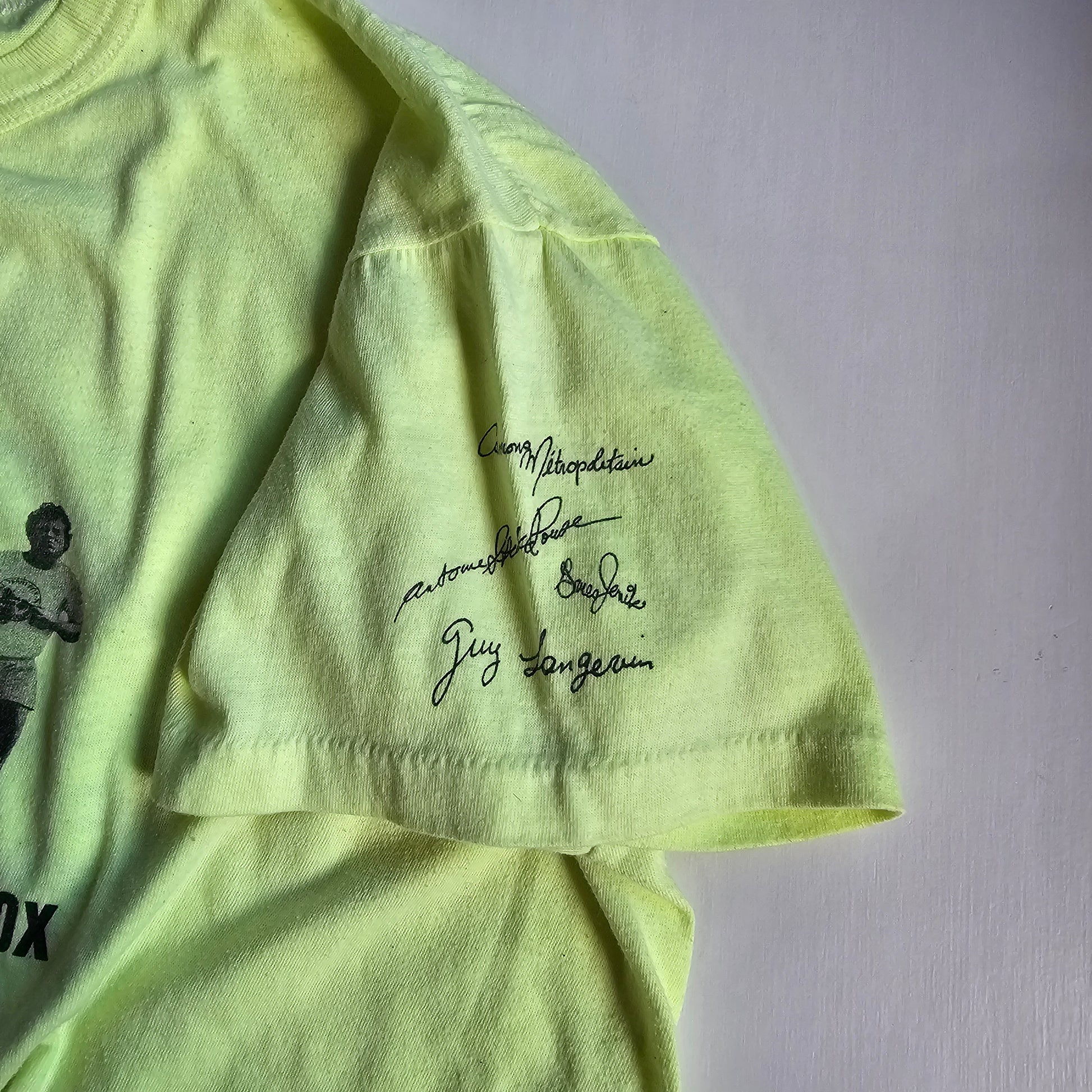 くたくたの着丈も短めのTシャツです。差し色にどうぞ。